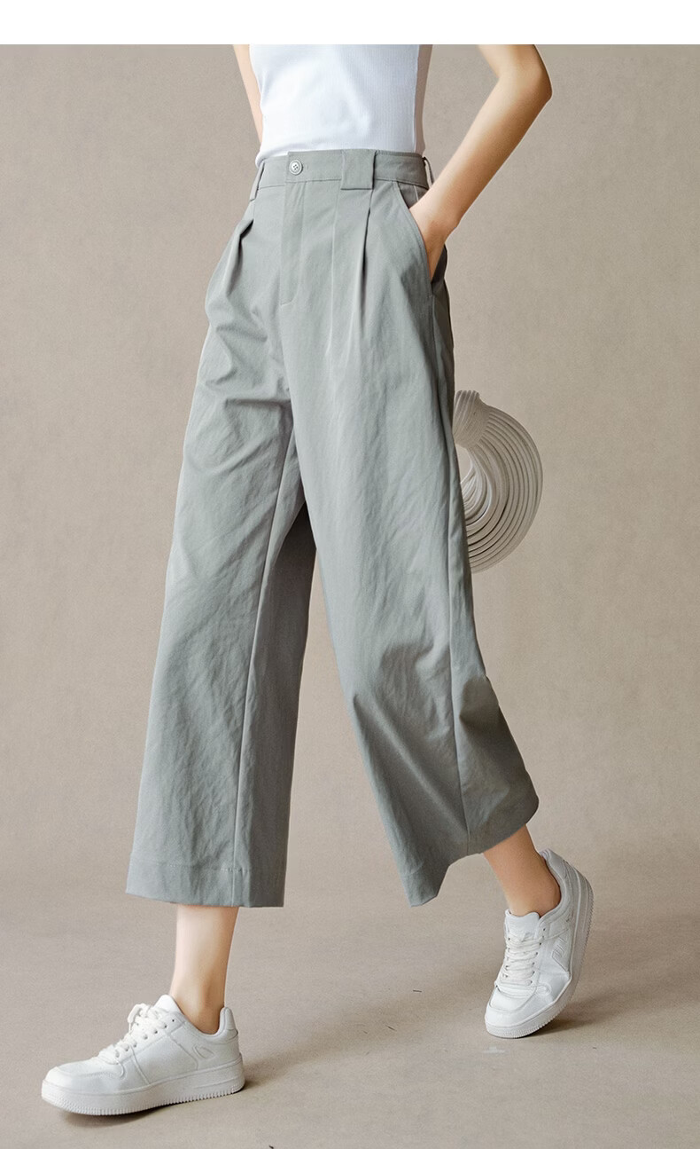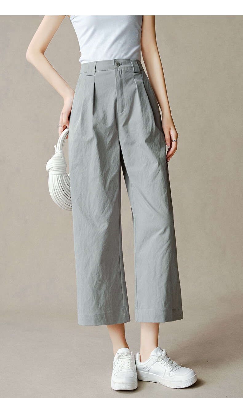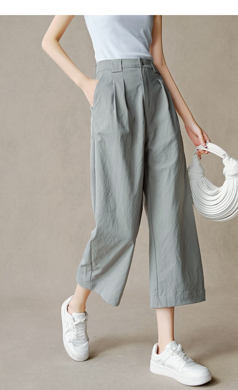 晚白【新品】2026年春款经典高腰格雷灰裤子半松紧舒适显瘦休闲阔腿裤 浅灰色 28