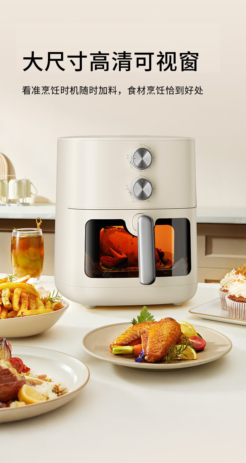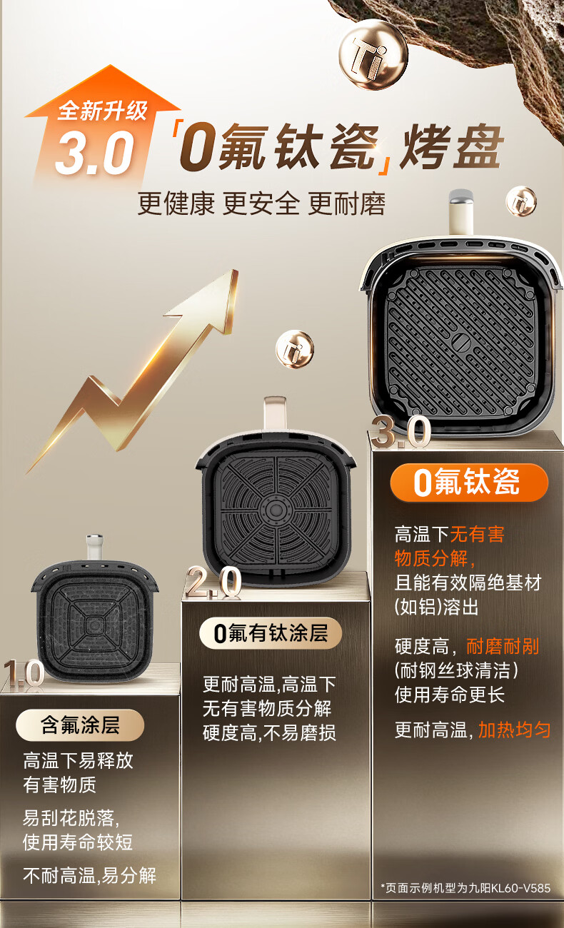 九阳(Joyoung)免翻面 蒸汽嫩炸 0氟钛瓷烤盘 空气炸锅6L大容量家用实用蒸烤炸一体可视大视窗KL60-V585