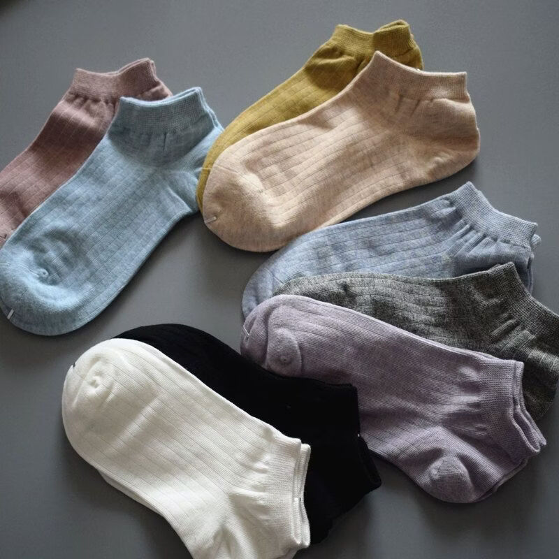 薄款女款简约生活纯色防汗防臭短筒船袜抗菌短袜百搭袜 【抗菌防臭】 多种颜色随机发货-5双装
