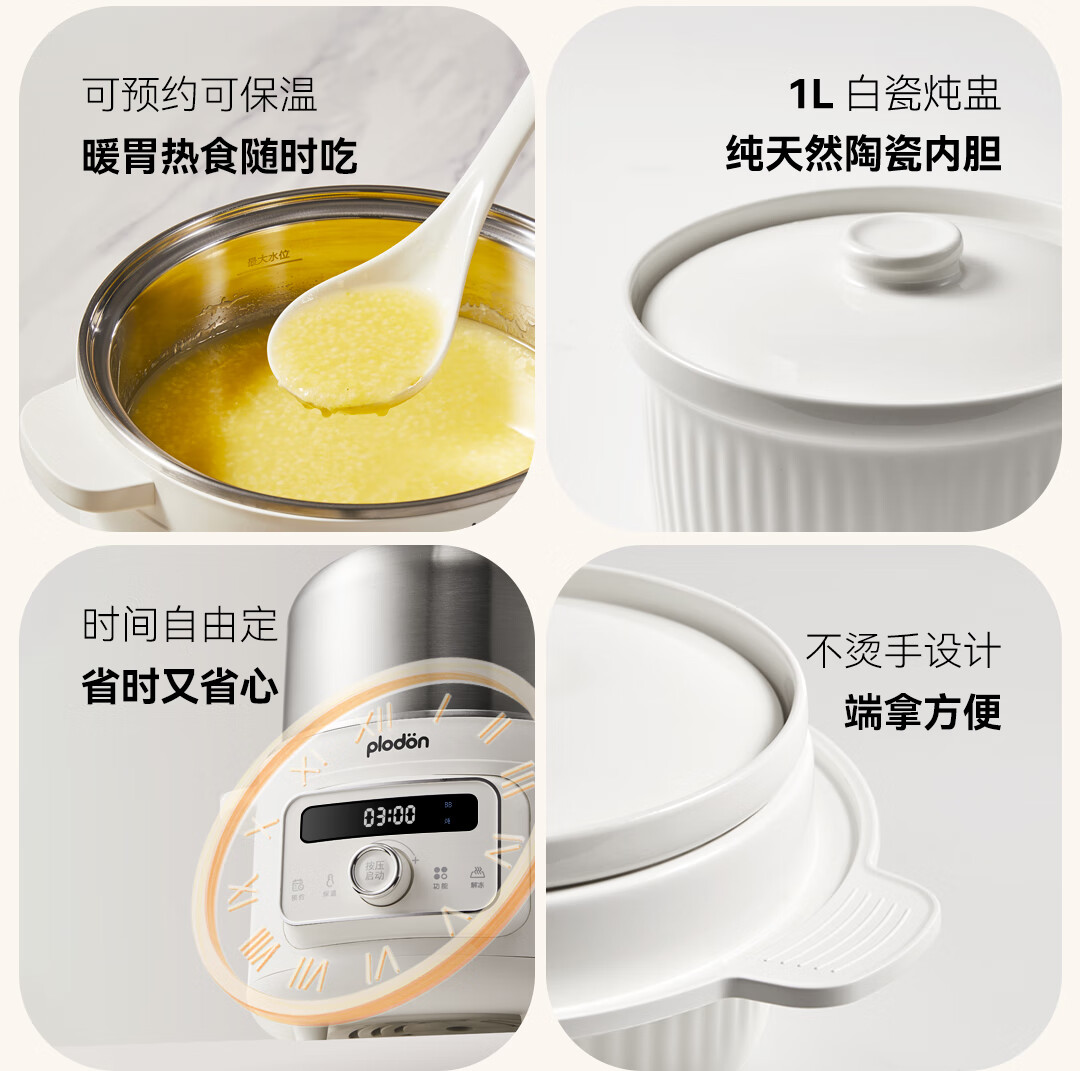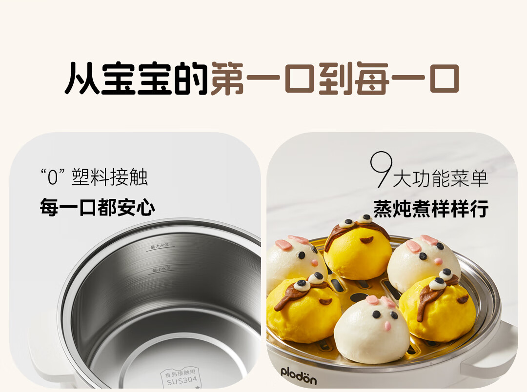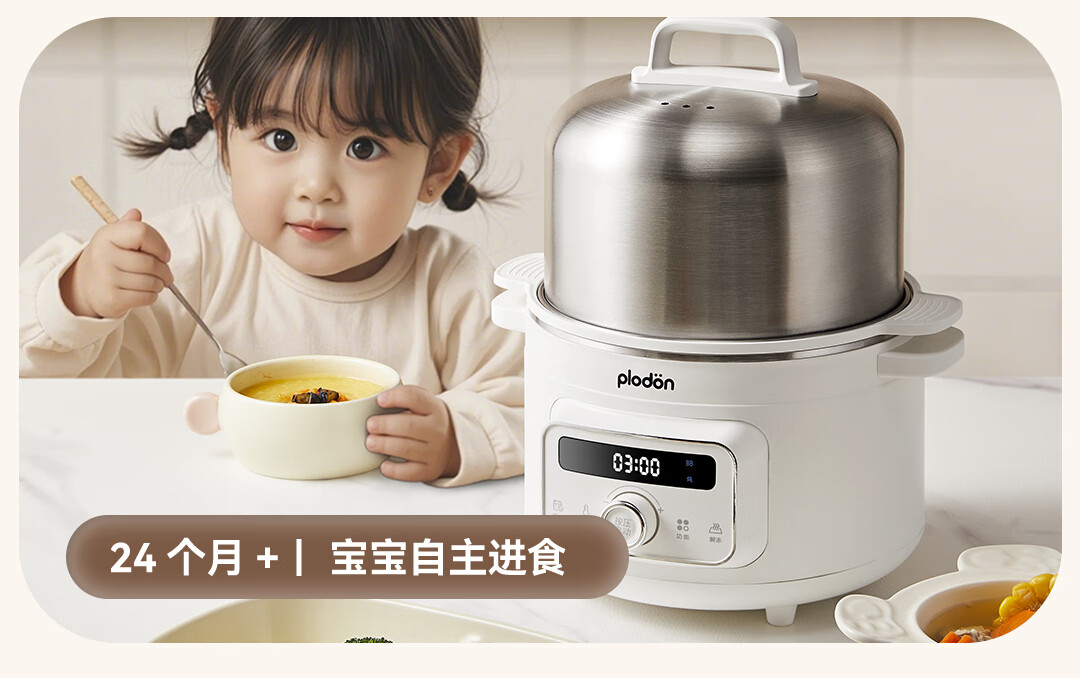 浦利顿PLODON电炖锅分月龄BB煲粥饭锅婴儿专用微压炖盅炖汤辅食锅辅食机