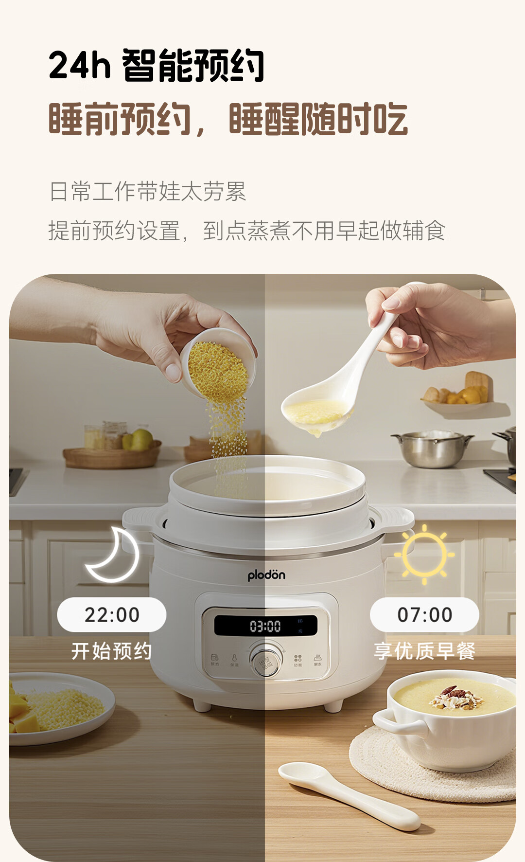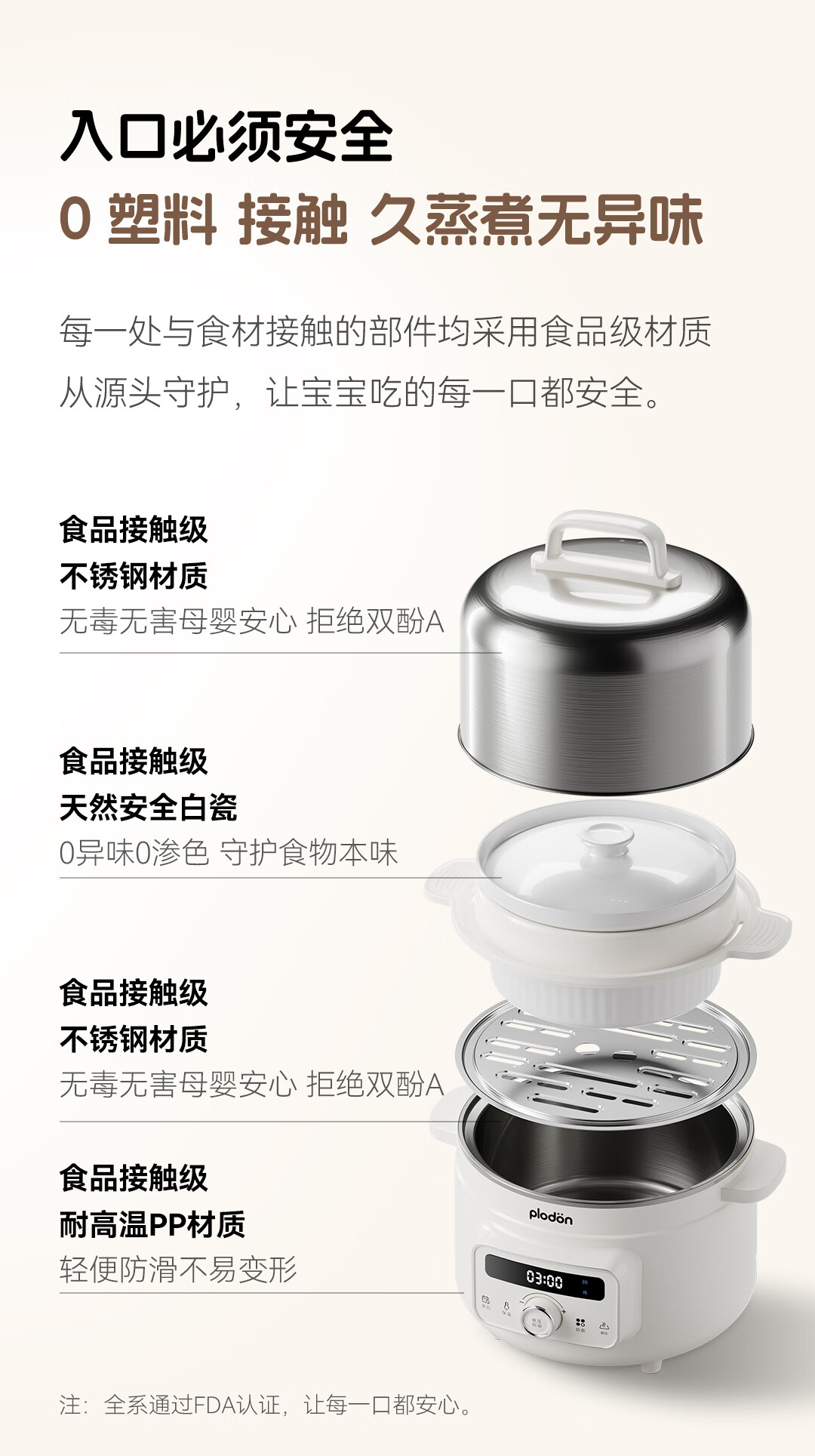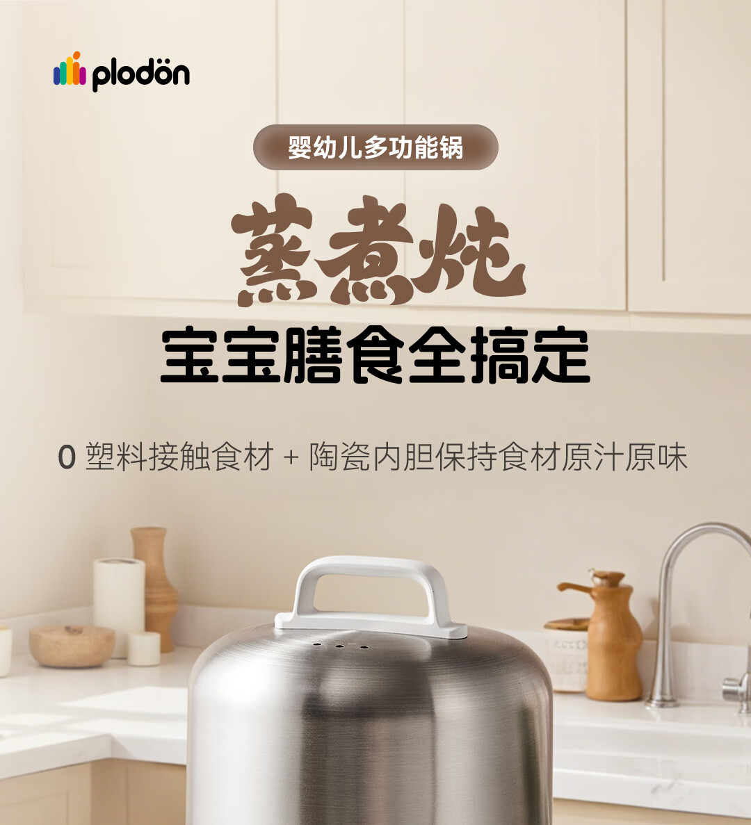 浦利顿PLODON电炖锅分月龄BB煲粥饭锅婴儿专用微压炖盅炖汤辅食锅辅食机