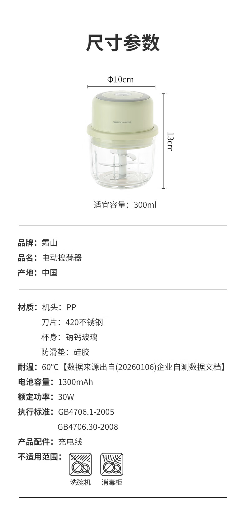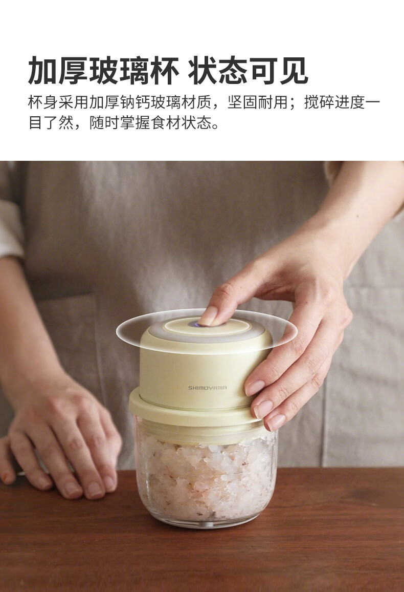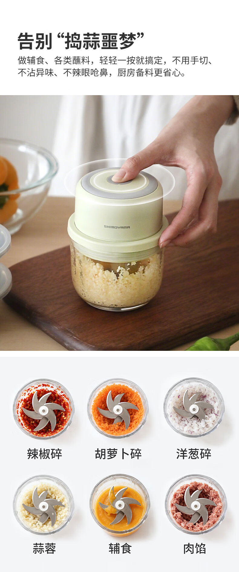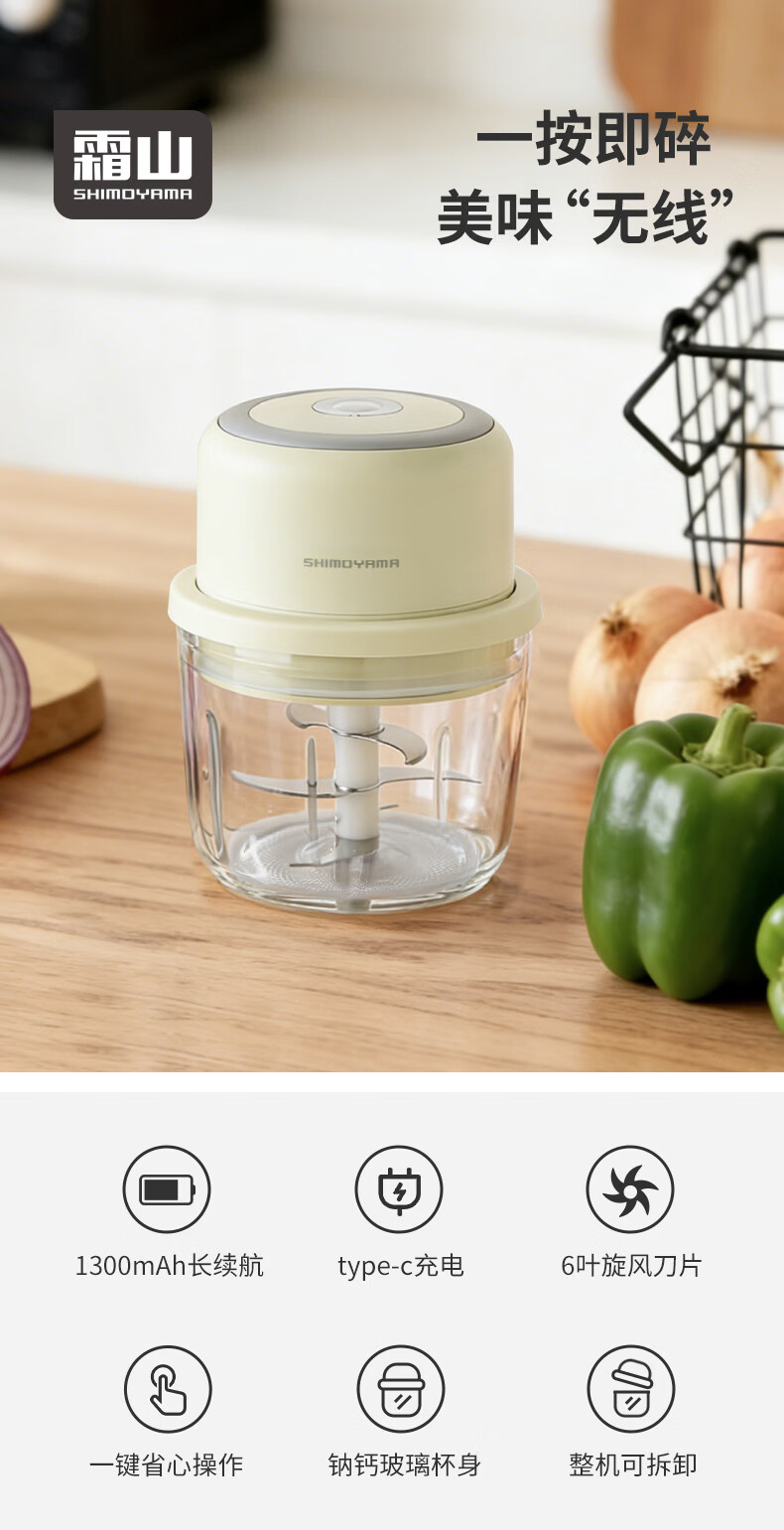 霜山电动捣蒜器玻璃身6叶刀小型辅食绞肉机无线打蒜蓉辣椒搅碎器 350ml【6叶刀+玻璃杯体】(赠充电线)