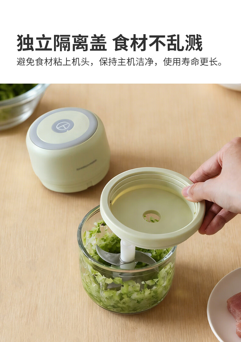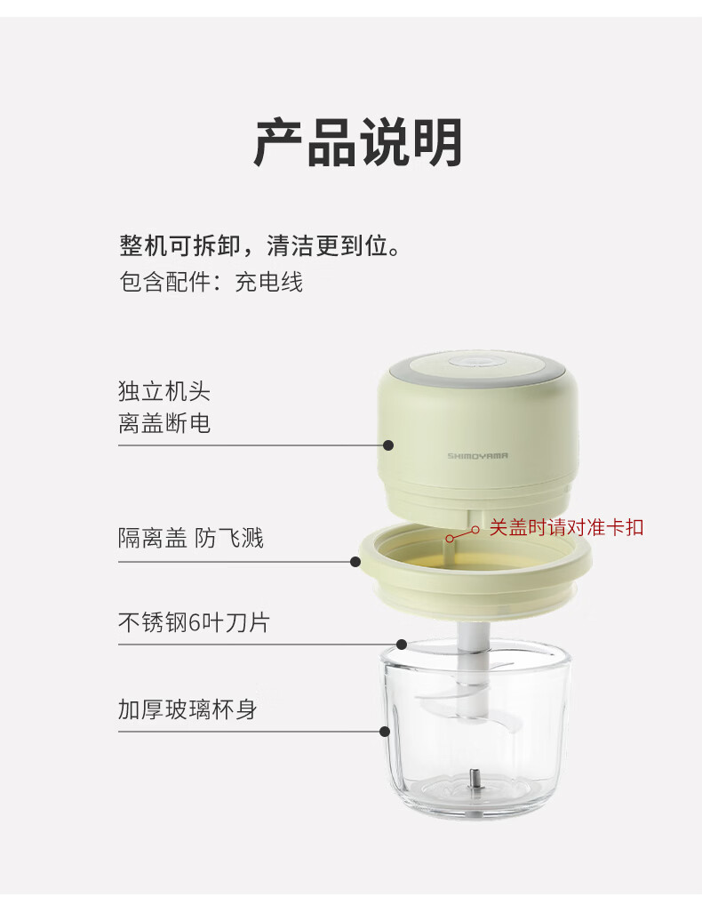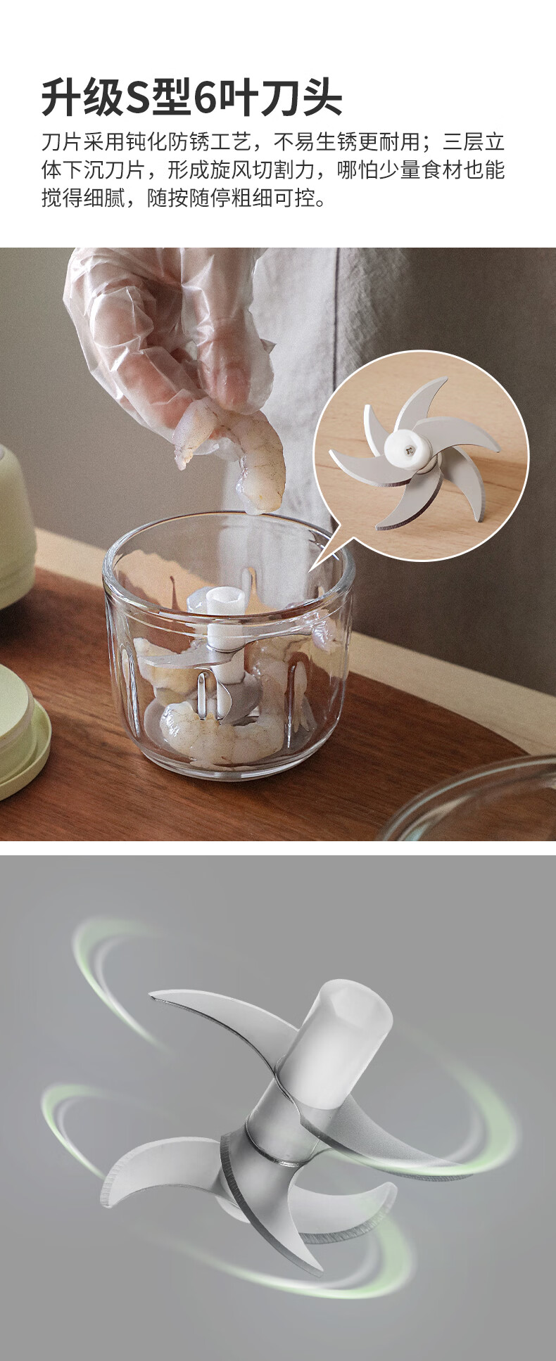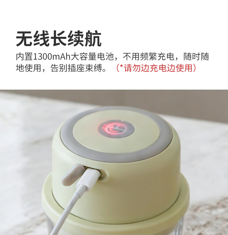 霜山电动捣蒜器玻璃身6叶刀小型辅食绞肉机无线打蒜蓉辣椒搅碎器 350ml【6叶刀+玻璃杯体】(赠充电线)
