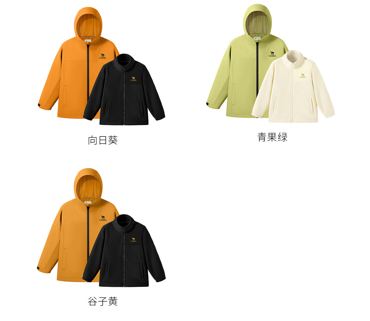 骆驼【小铠甲】儿童三合一冲锋衣两件套防风防水外套户外耐磨中大童