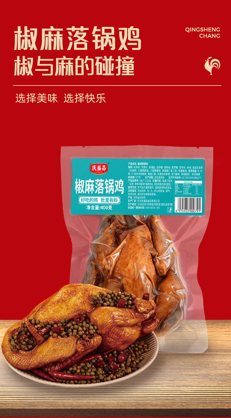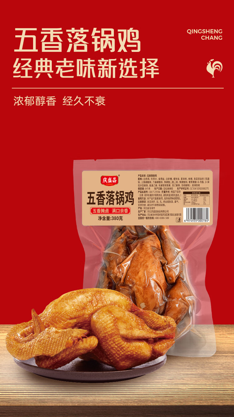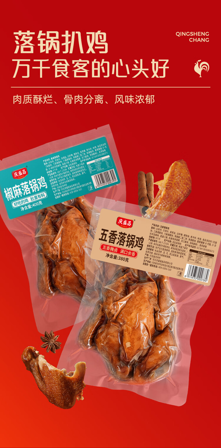 庆盛昌五香扒鸡真空特产椒麻鸡开袋即食烧鸡熟食整只卤鸡零食下酒菜卤味 【试吃推荐】五香鸡450g
