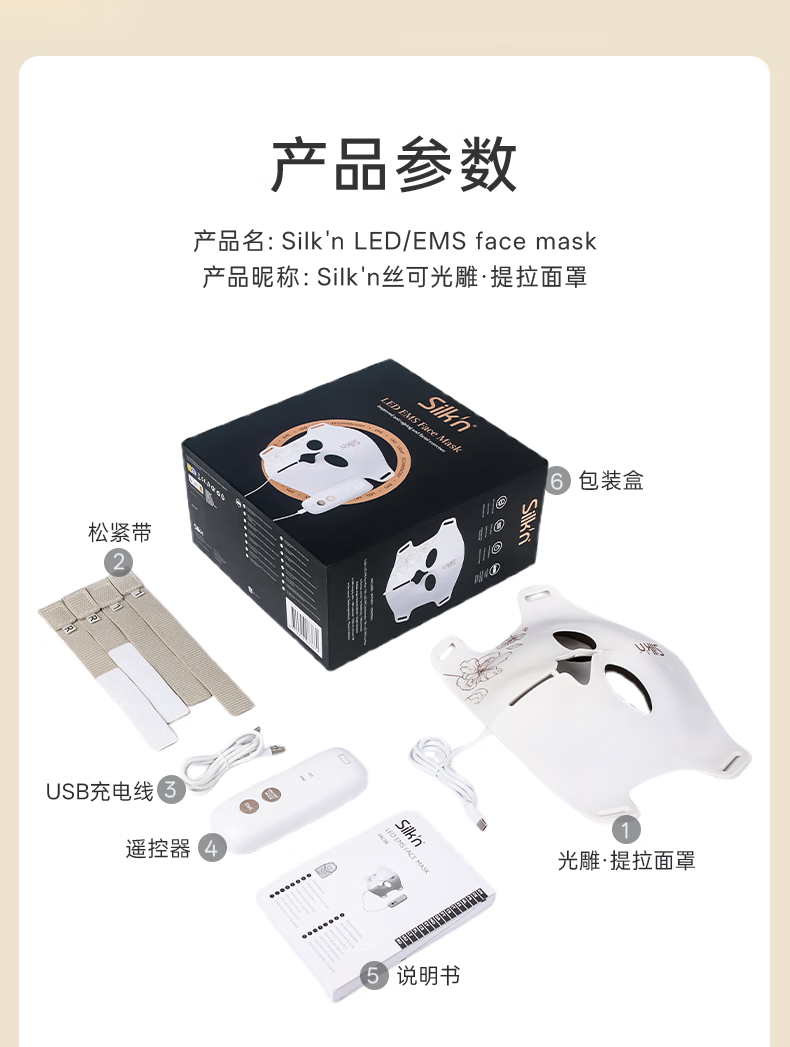Silk'n【张茜同款】丝可【开启光疗面罩新纪元】面部微电流红蓝光面罩大排灯消痘淡纹提拉紧致面罩