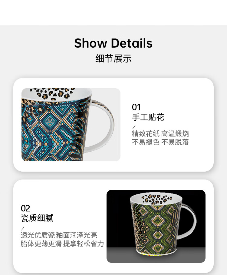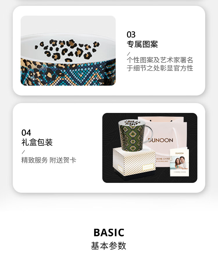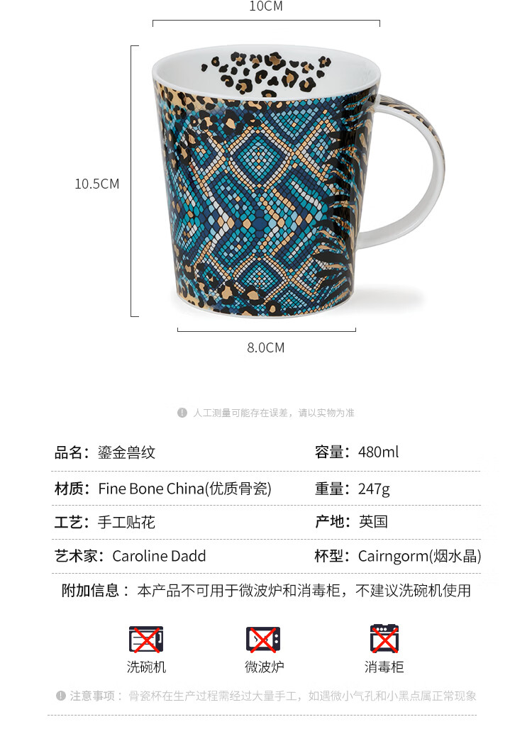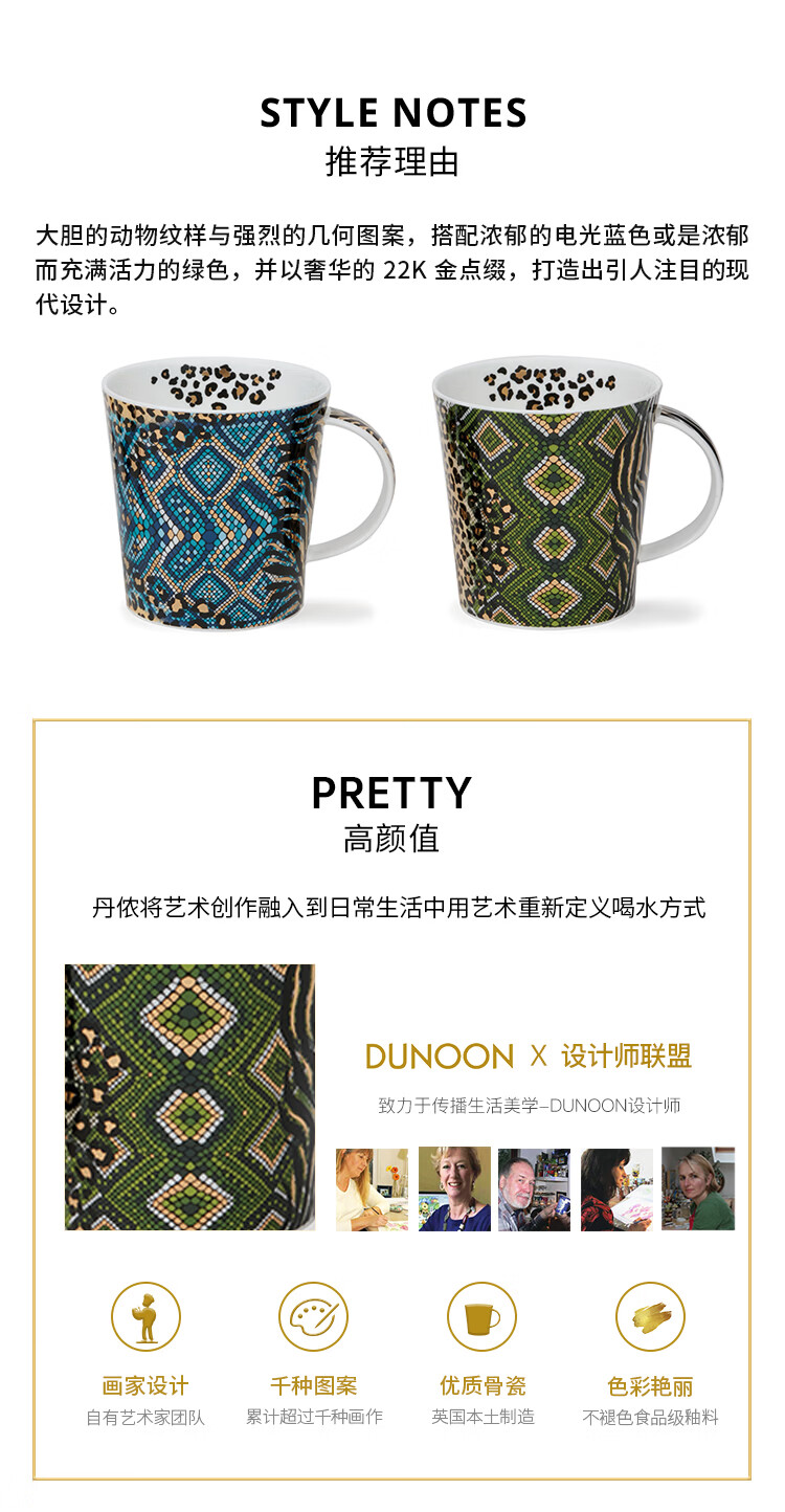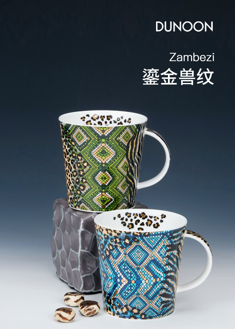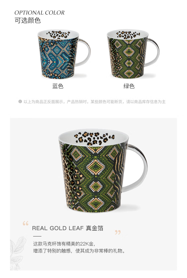 丹侬(DUNOON)英国骨瓷马克杯大容量咖啡杯 鎏金兽纹几何杯子 22k金装饰礼盒装 蓝色(22K金)(480ml)