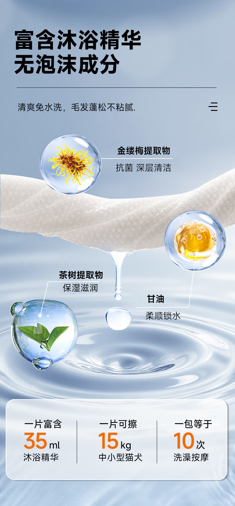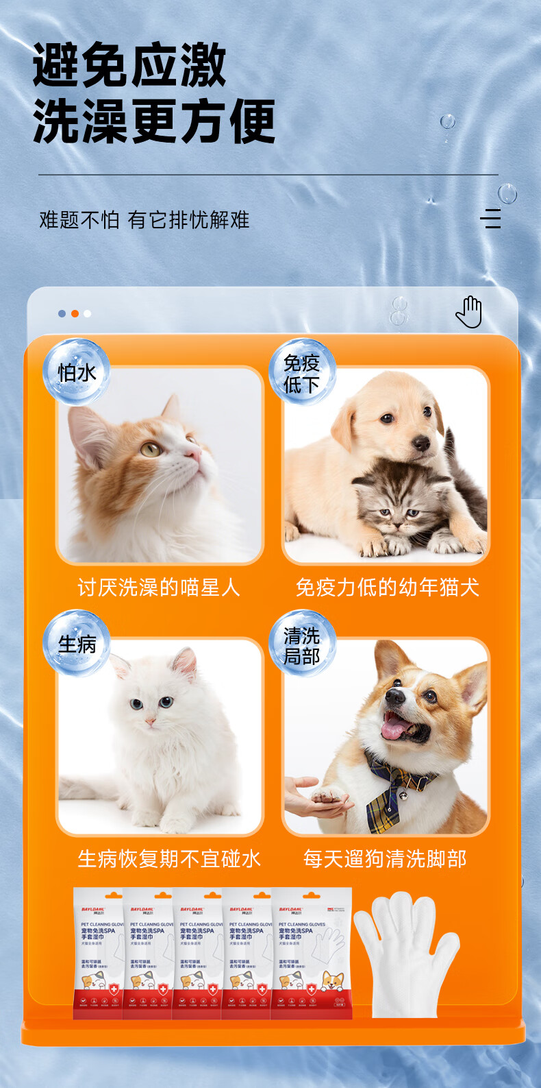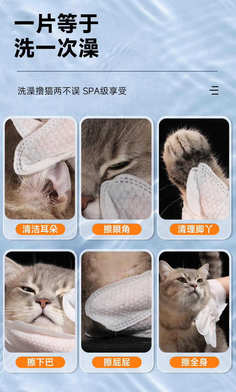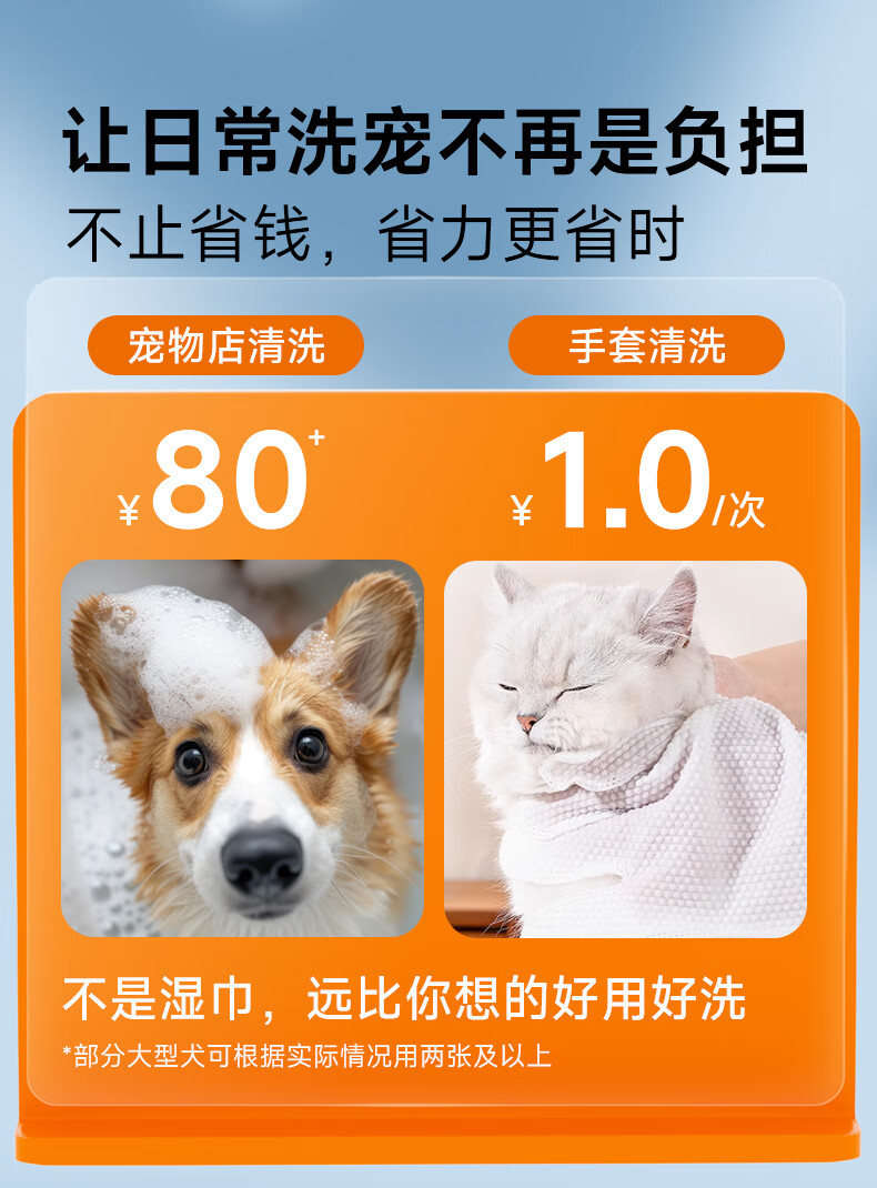 拜达尔宠物免洗手套猫咪狗狗专用湿巾去味洗澡幼犬兔子干洗清洁除臭10片