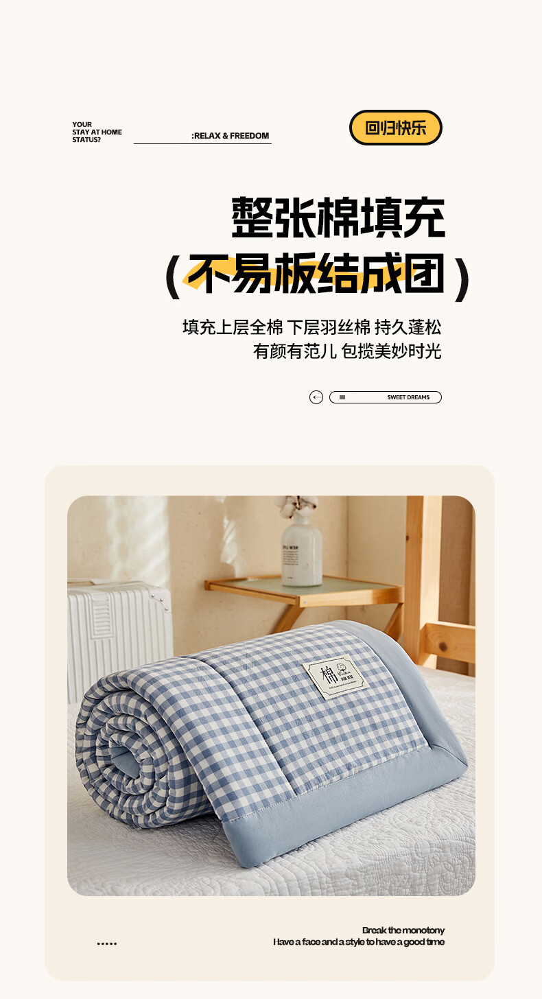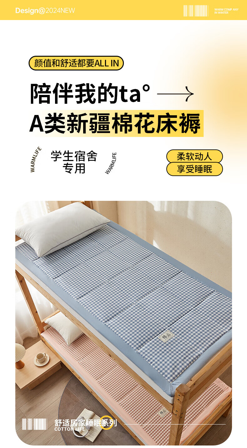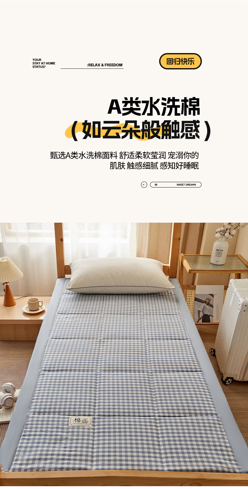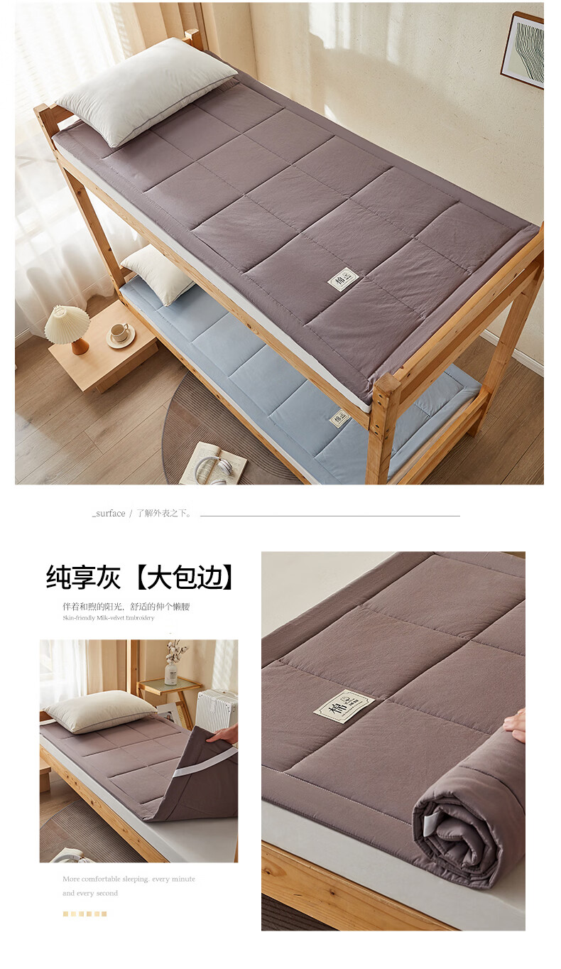 无印良品学生宿舍床垫遮盖物0.9x1.9米新疆棉花单人褥子可折叠榻榻米床褥 纯享灰【A类母婴级 新疆棉花填充】 90*190cm【重约1.8斤】
