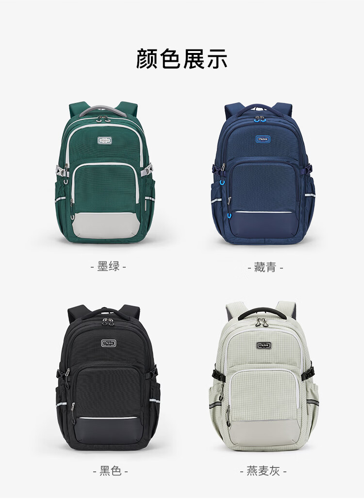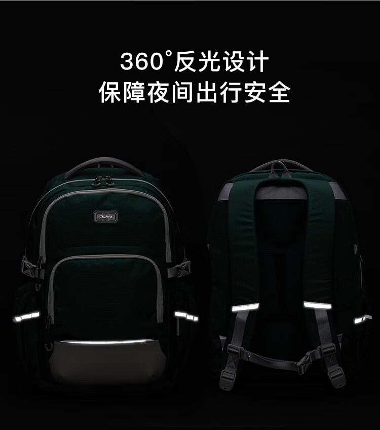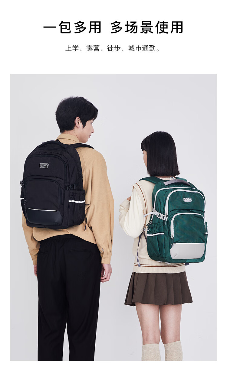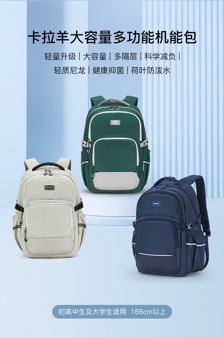卡拉羊(KALA·Y)中学生书包大容量初中生双肩包男女学生旅行休闲背包 28L黑色(身高150以上) 适合初高中生