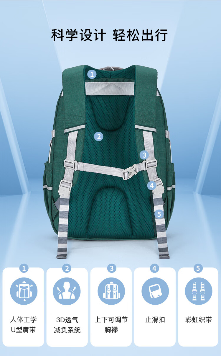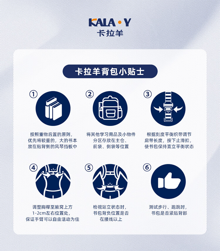 卡拉羊小学生书包1-3-6年级五维减负防下坠儿童护脊防泼水背包男女生 小号(135cm以下)经典蓝