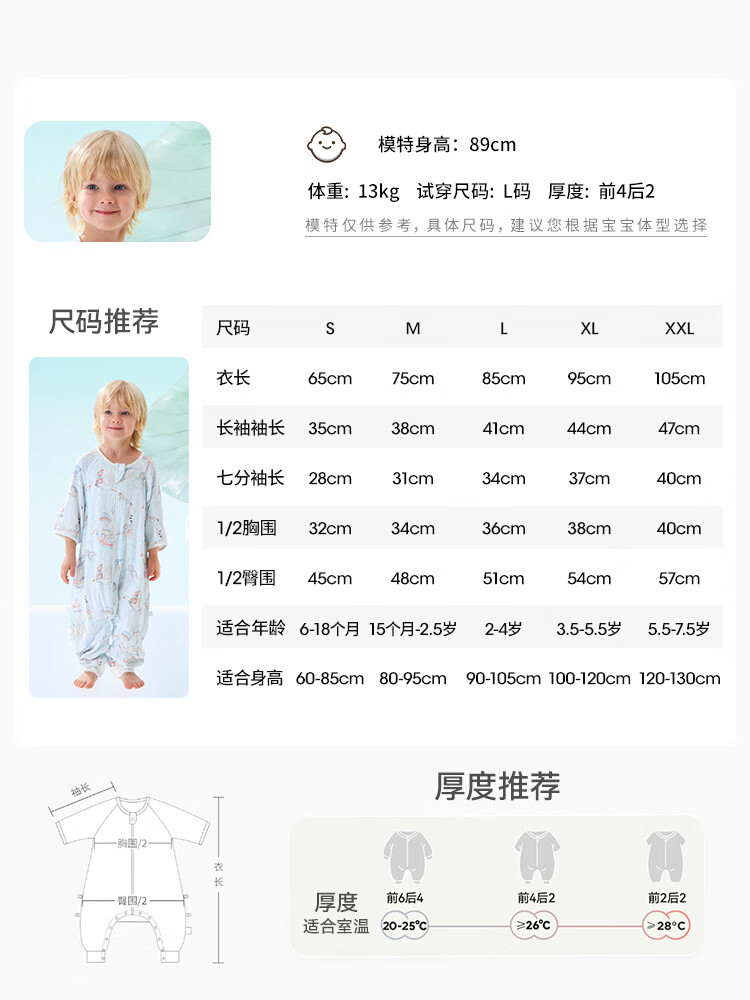 贝肽斯婴儿睡袋春夏薄荷网眼儿童分腿睡袋婴幼儿防踢被前6后4 天空S