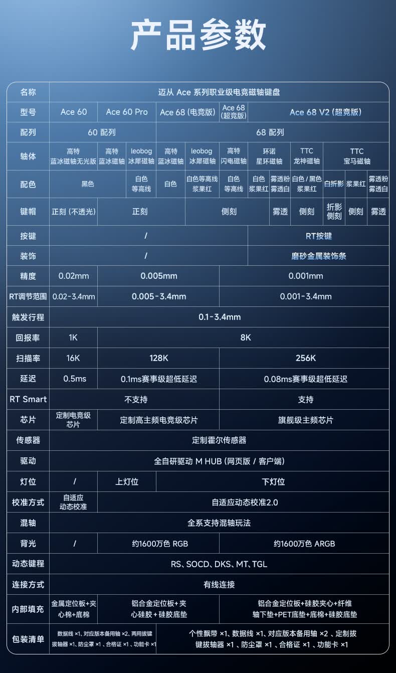 迈从(MCHOSE)Ace 68 V2磁轴键盘Gus同款RT电竞游戏低延迟60pro机械有线连接68键配列FPS双驱动无畏契约 Ace 60 无光版 蓝冰磁轴