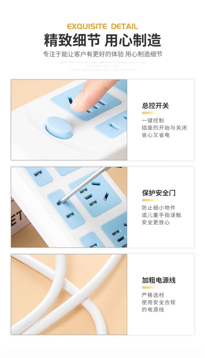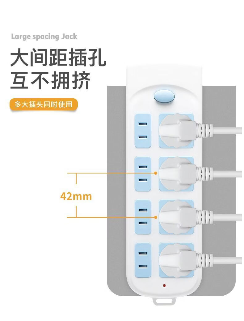达聚科多功能插线板家用带线插座面板柔性时钟款转换器带开关宿舍usb多接口充电接线板学生神器 六插位【全长1.8米】