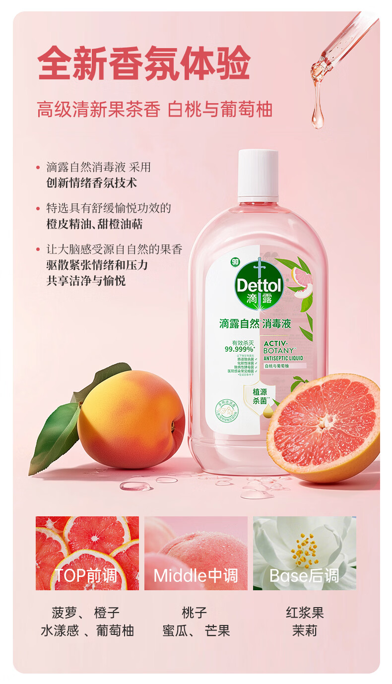 滴露【杀菌力等于日晒8小时】滴露消毒液1L香氛婴幼儿童衣物除味清香 【单瓶尝鲜】1000mL*1母婴植源款
