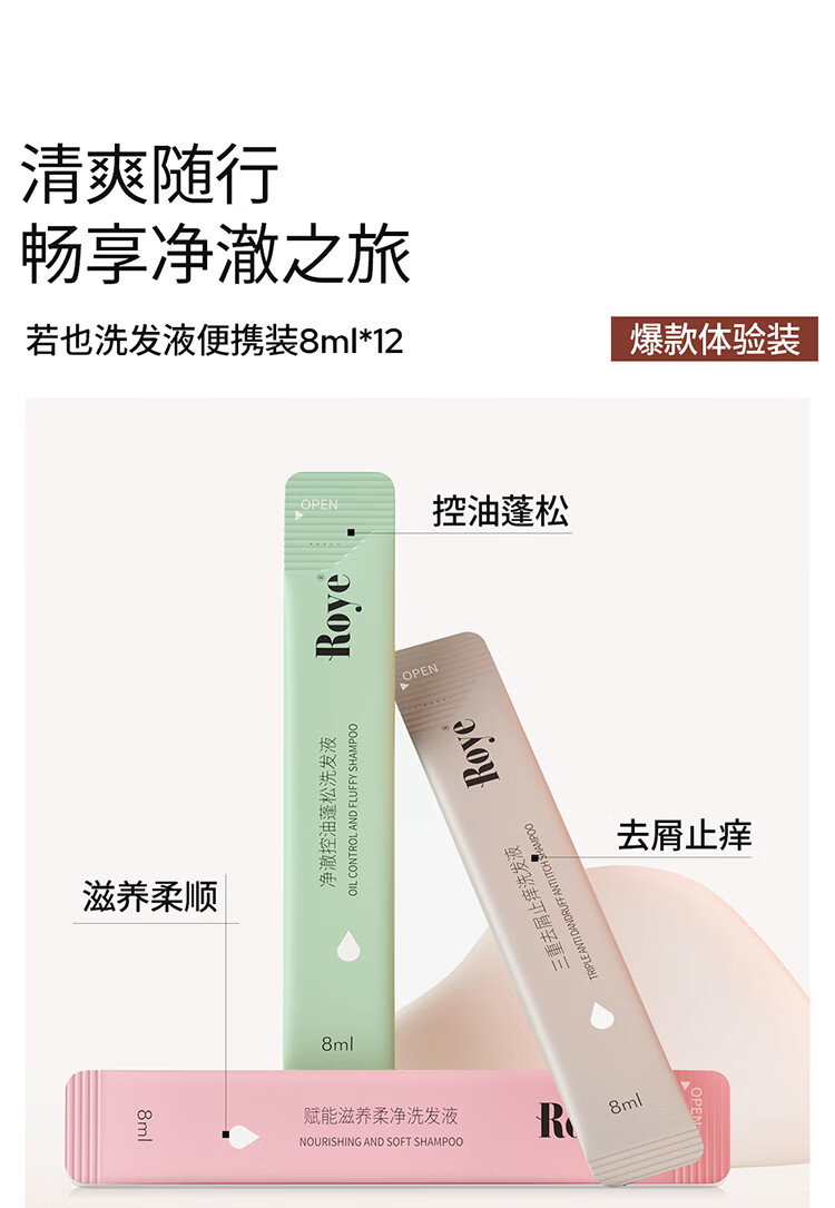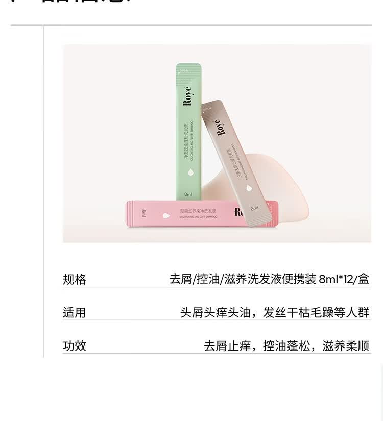 roye控油去屑止痒柔顺洗发水旅行装洗发露干枯毛躁便携盒装洗发液 【油软塌】控油蓬松旅行便携装(8ml*12)