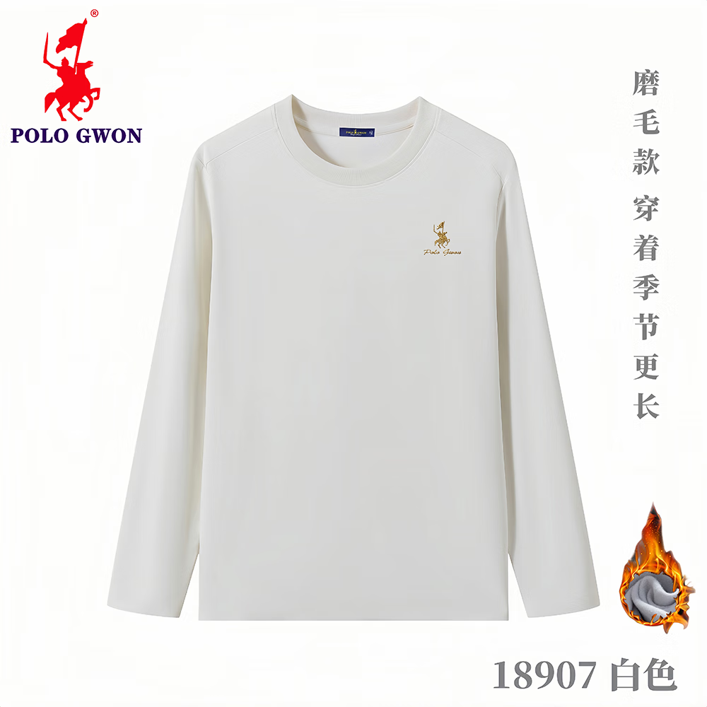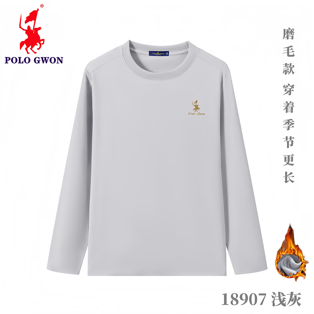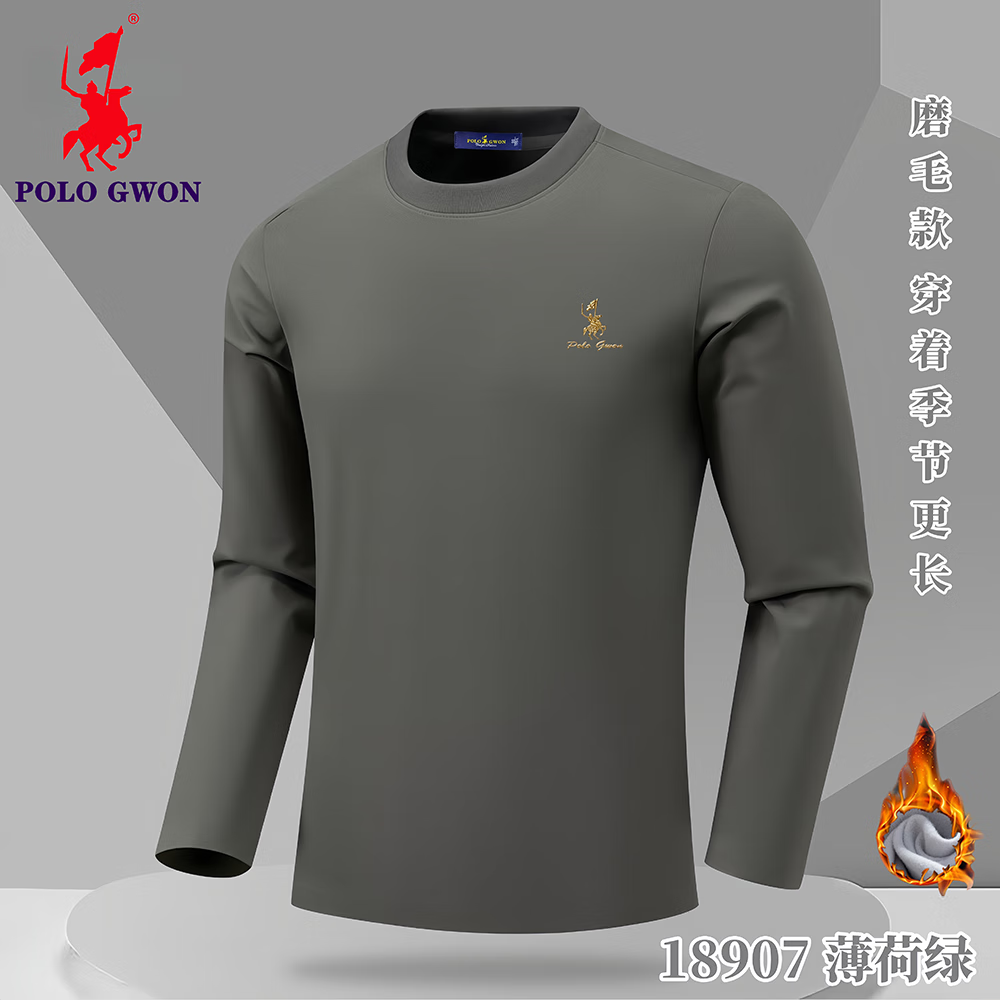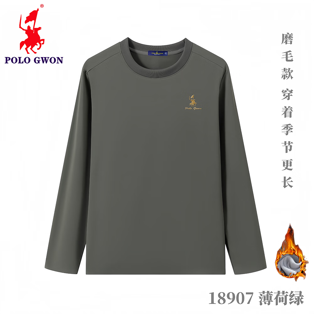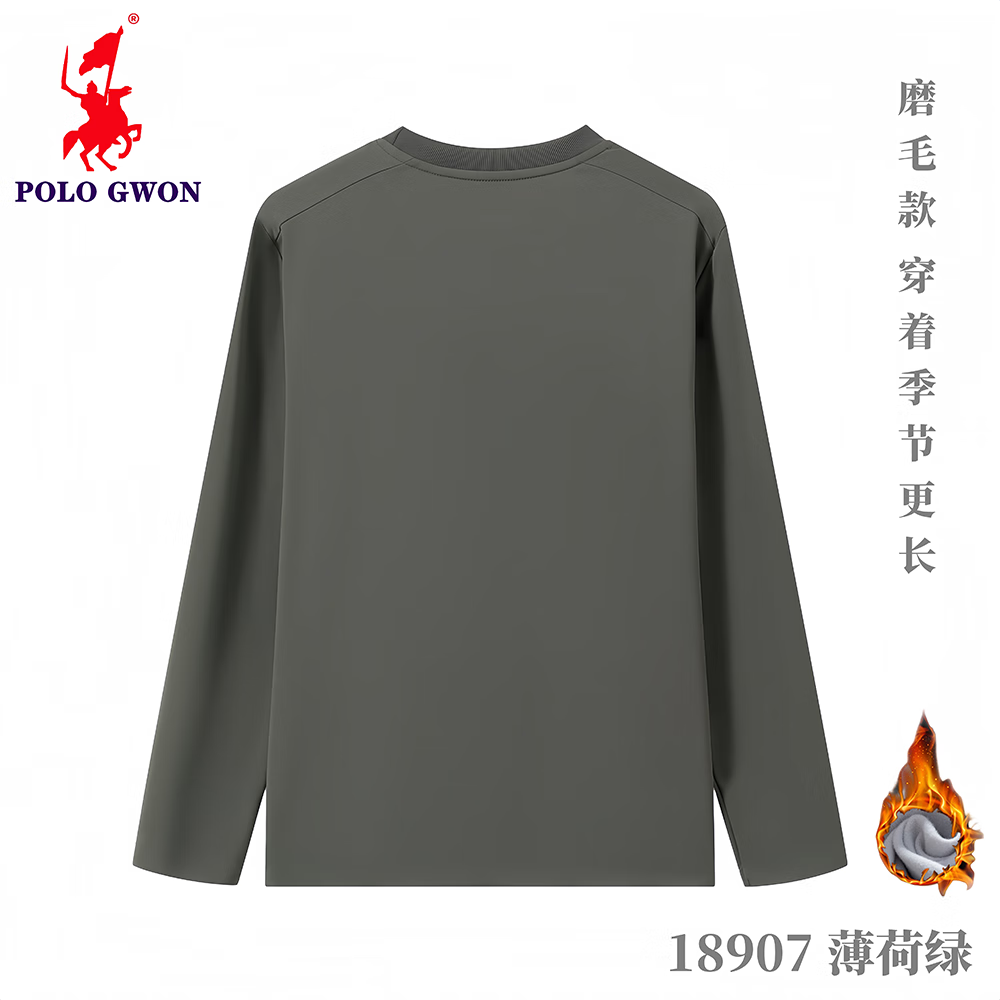 POLOGWON【加绒保暖】保罗秋冬新款圆领卫衣男士打底衫宽松休闲长袖T恤男 薄荷绿 4XL (建议200-220斤)