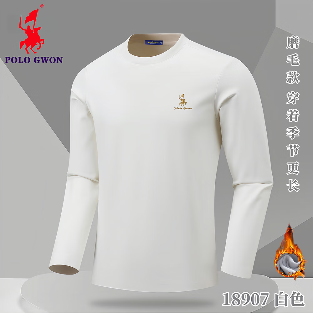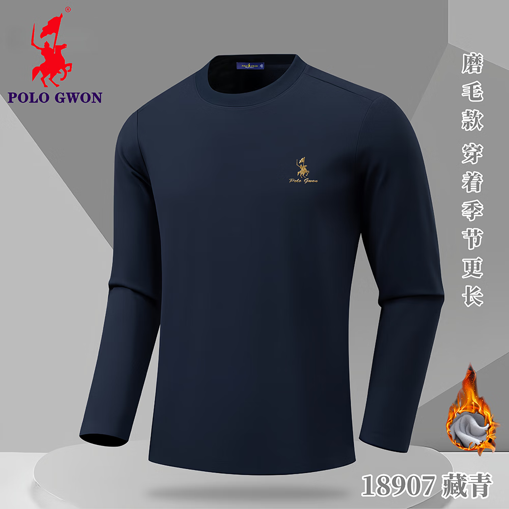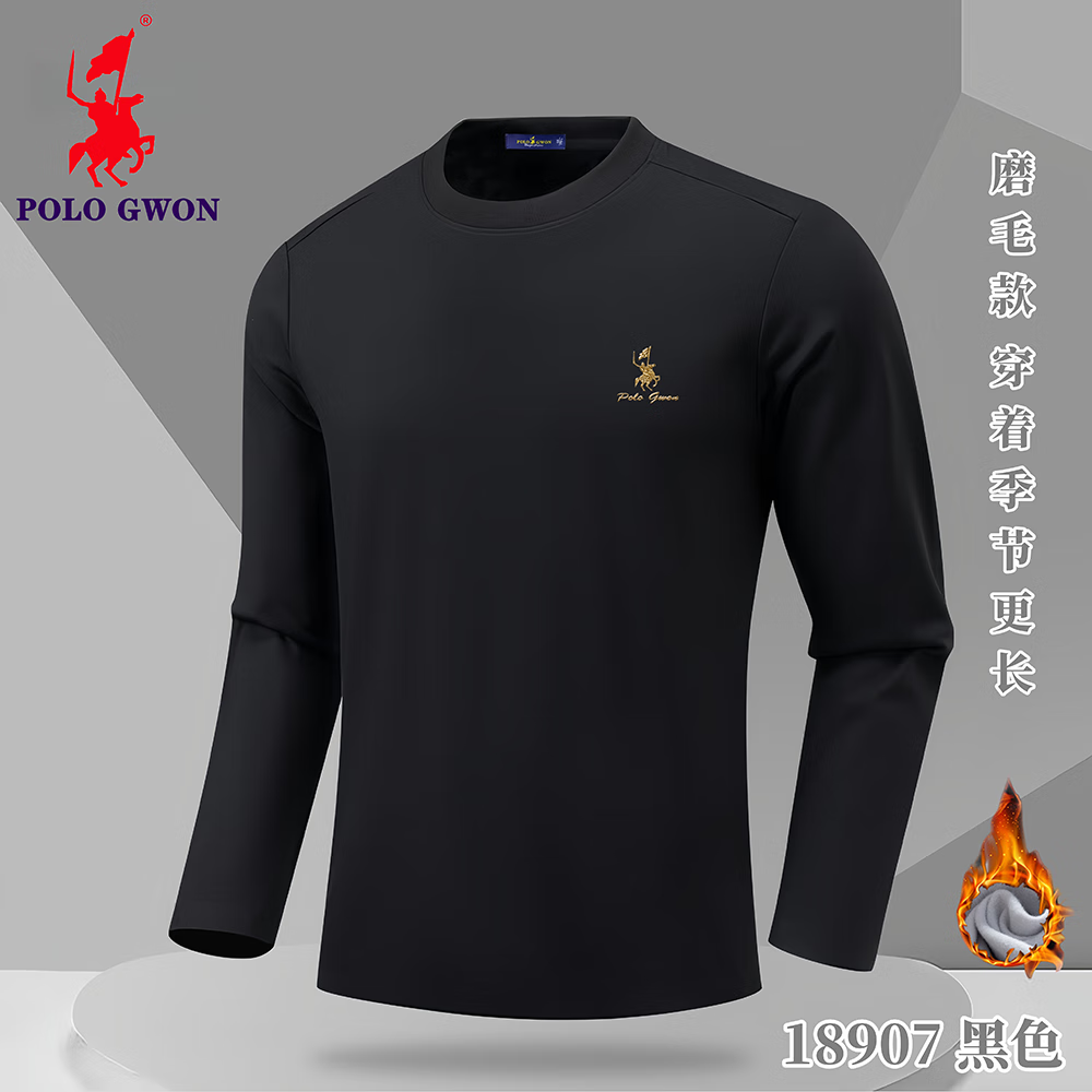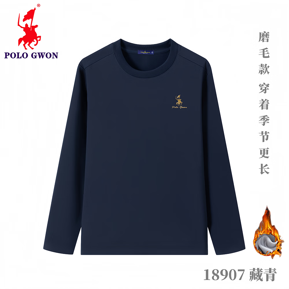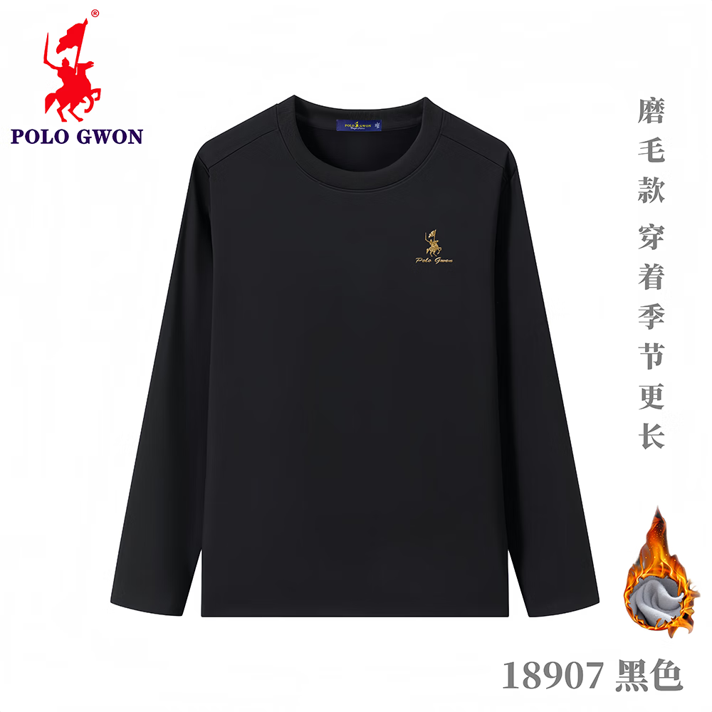 POLOGWON【加绒保暖】保罗秋冬新款圆领卫衣男士打底衫宽松休闲长袖T恤男 薄荷绿 4XL (建议200-220斤)