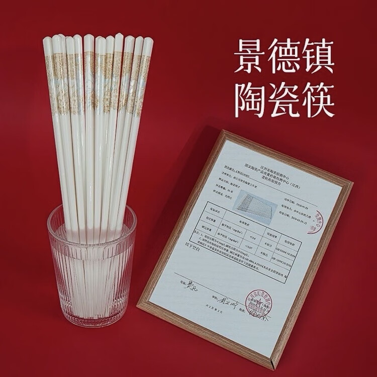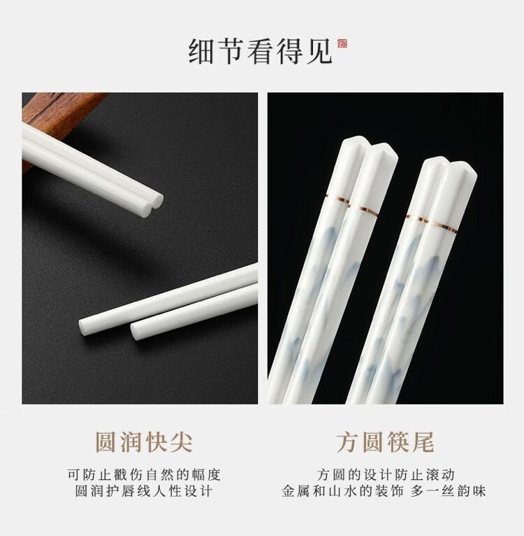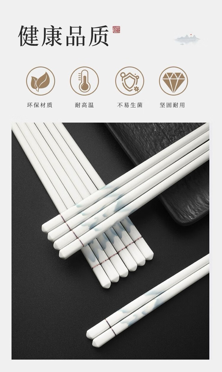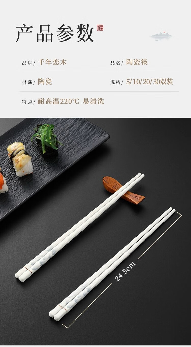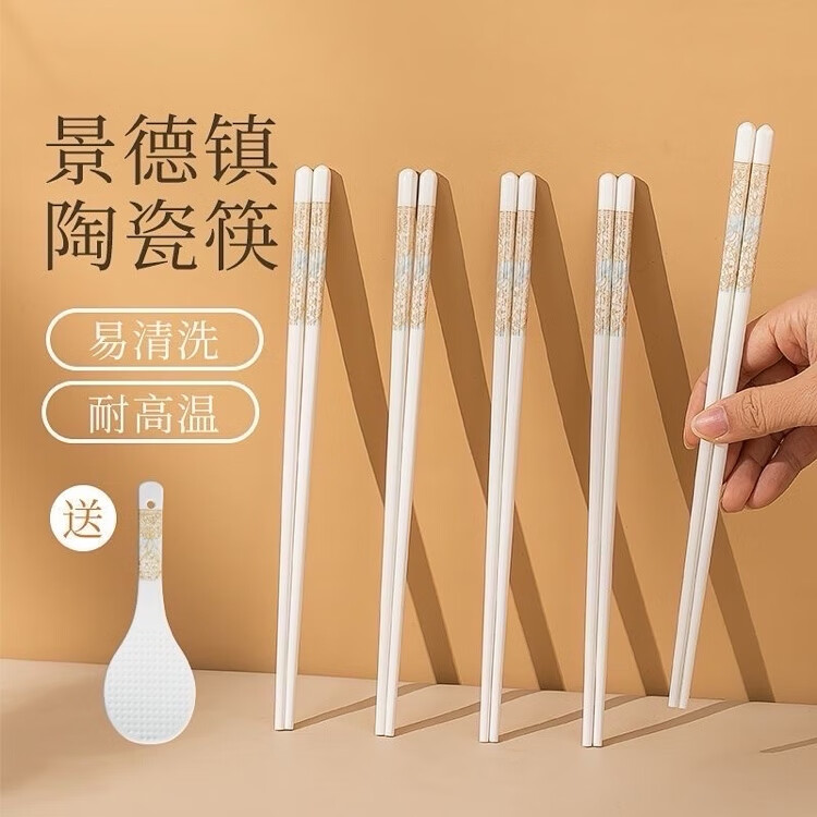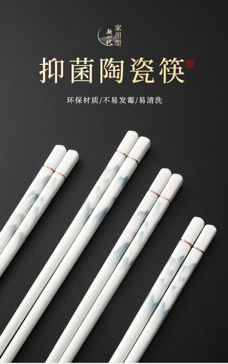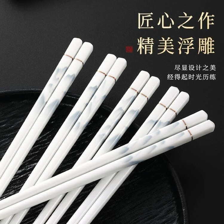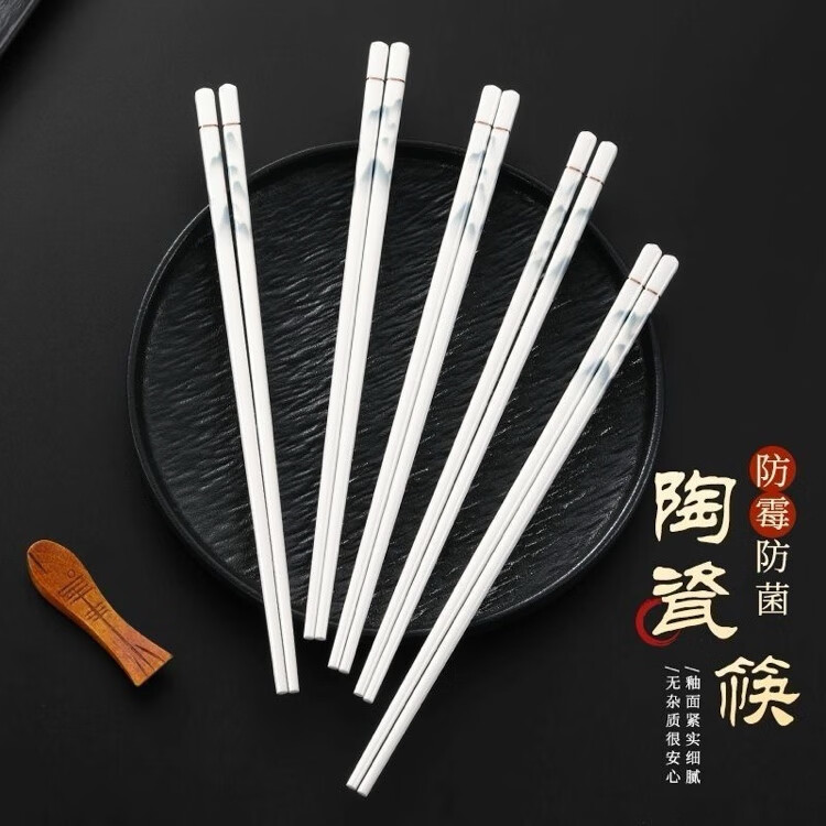陶瓷筷子景德镇陶瓷筷子不发霉高档防滑耐高温筷子碗筷 格调高雅 十双陶瓷筷子关注送饭勺