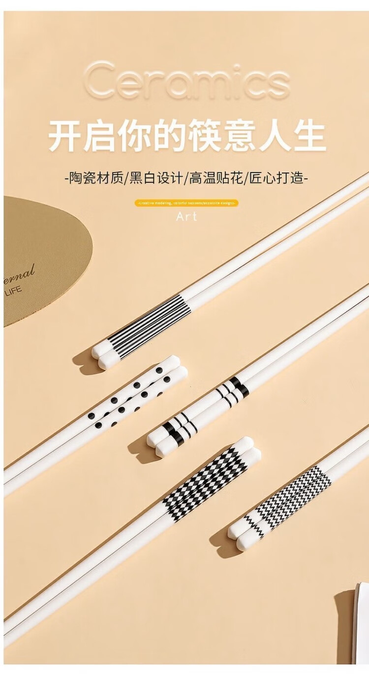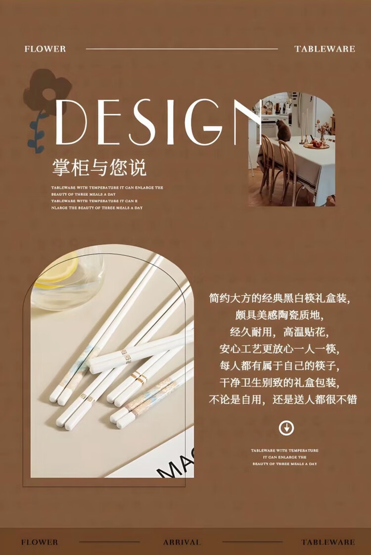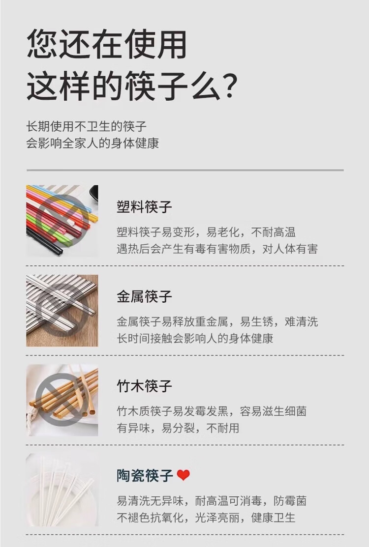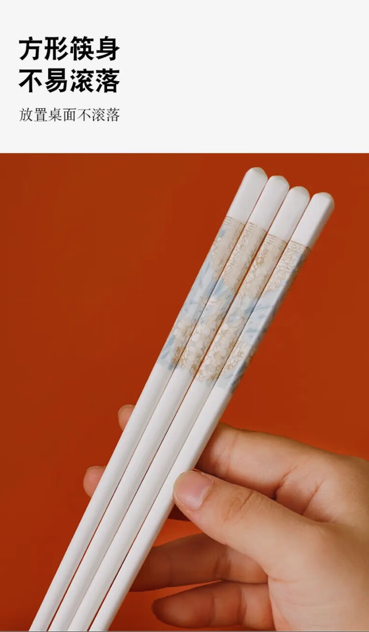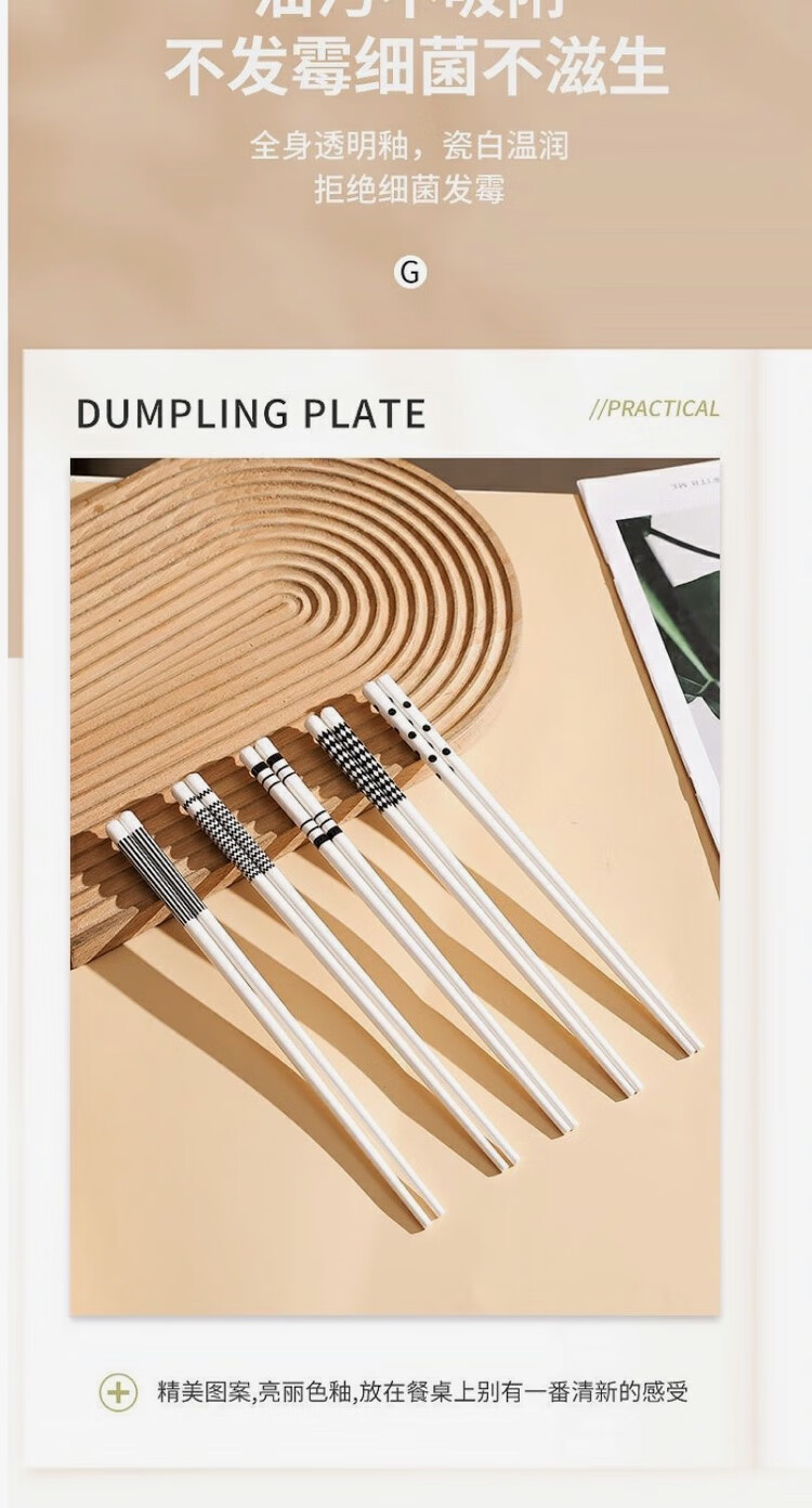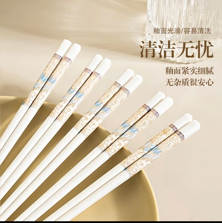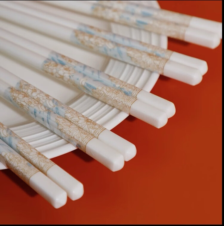 陶瓷筷子景德镇陶瓷筷子不发霉高档防滑耐高温筷子碗筷 格调高雅 十双陶瓷筷子关注送饭勺