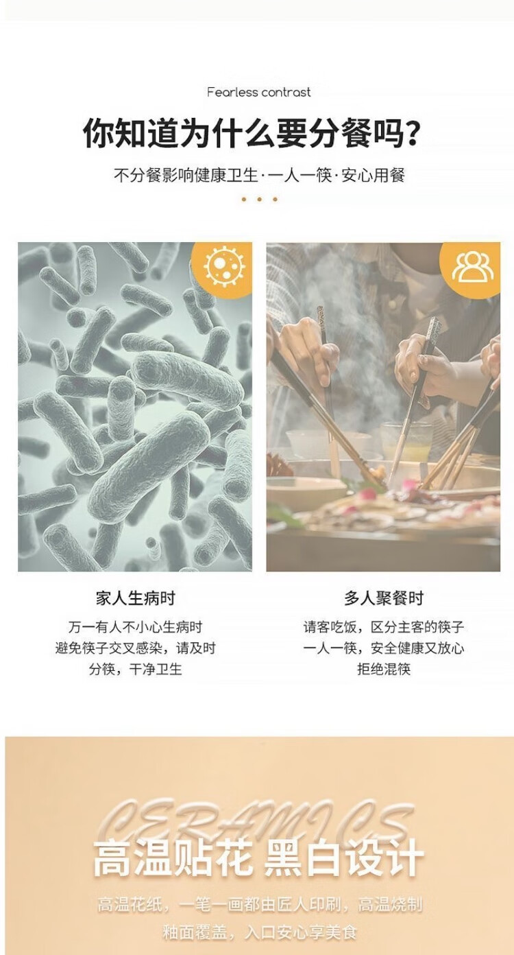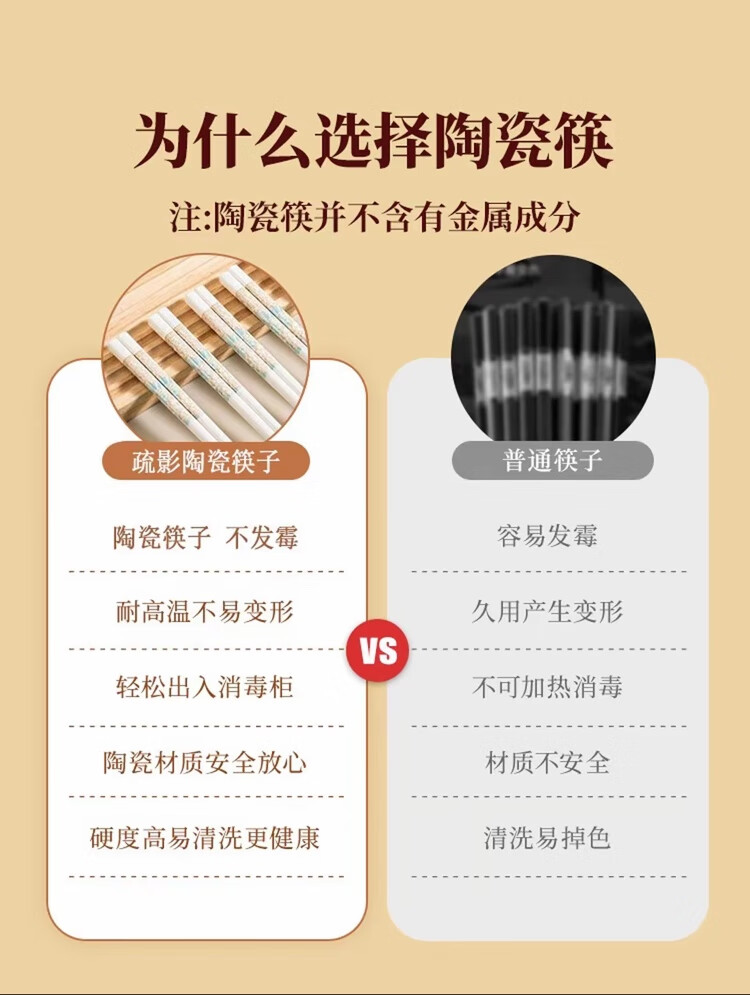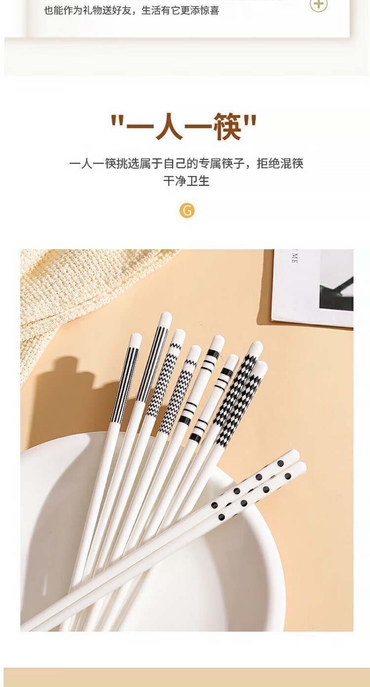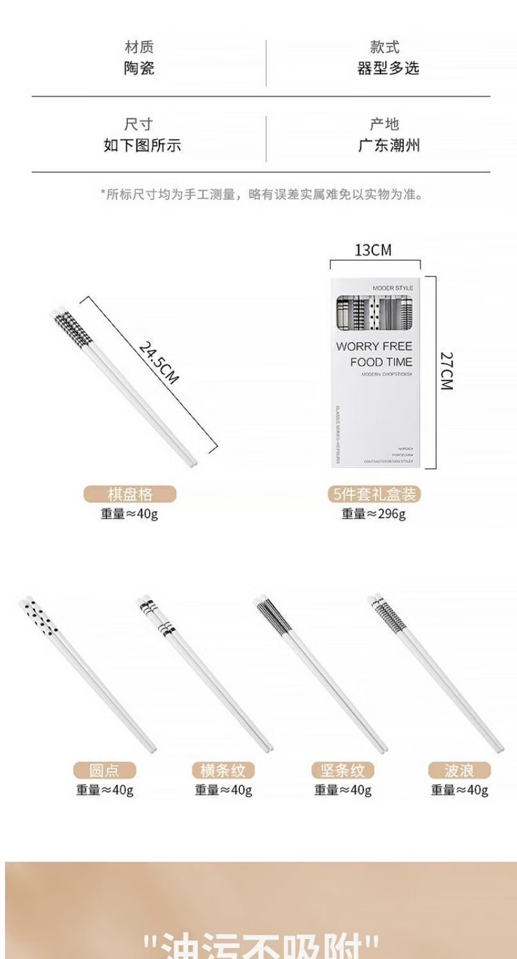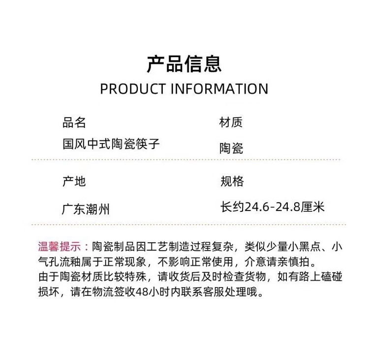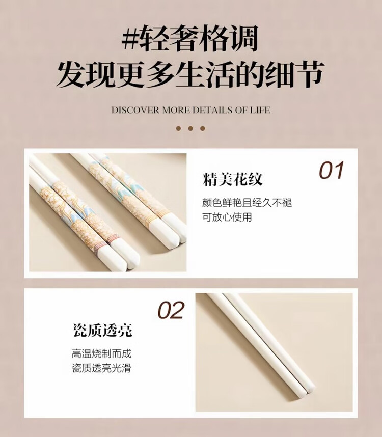 陶瓷筷子景德镇陶瓷筷子不发霉高档防滑耐高温筷子碗筷 格调高雅 十双陶瓷筷子关注送饭勺
