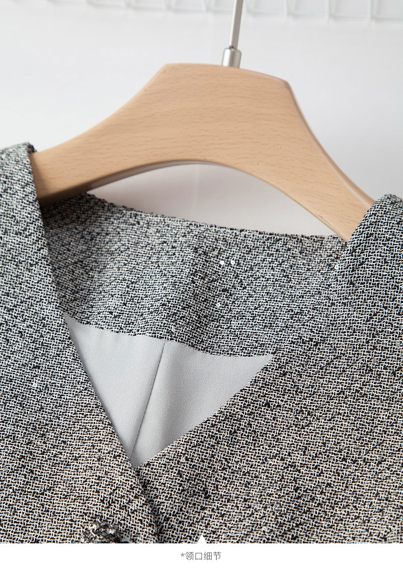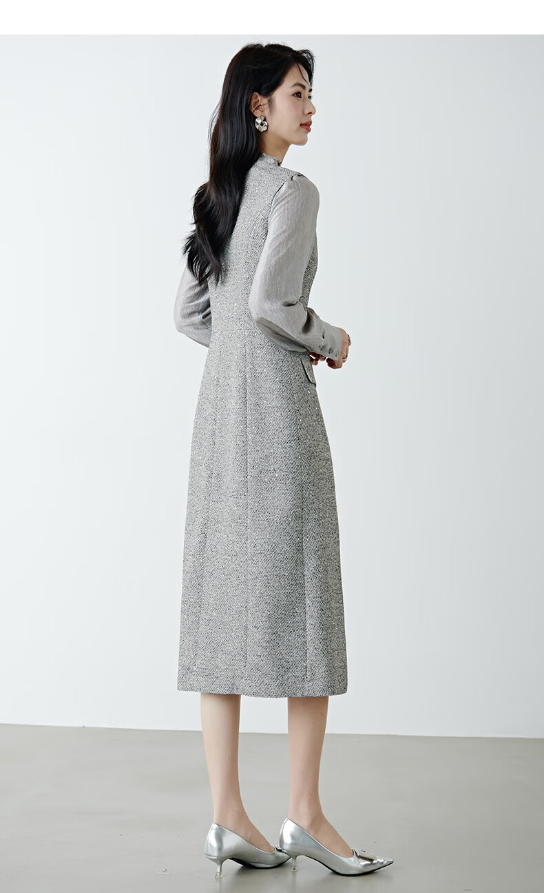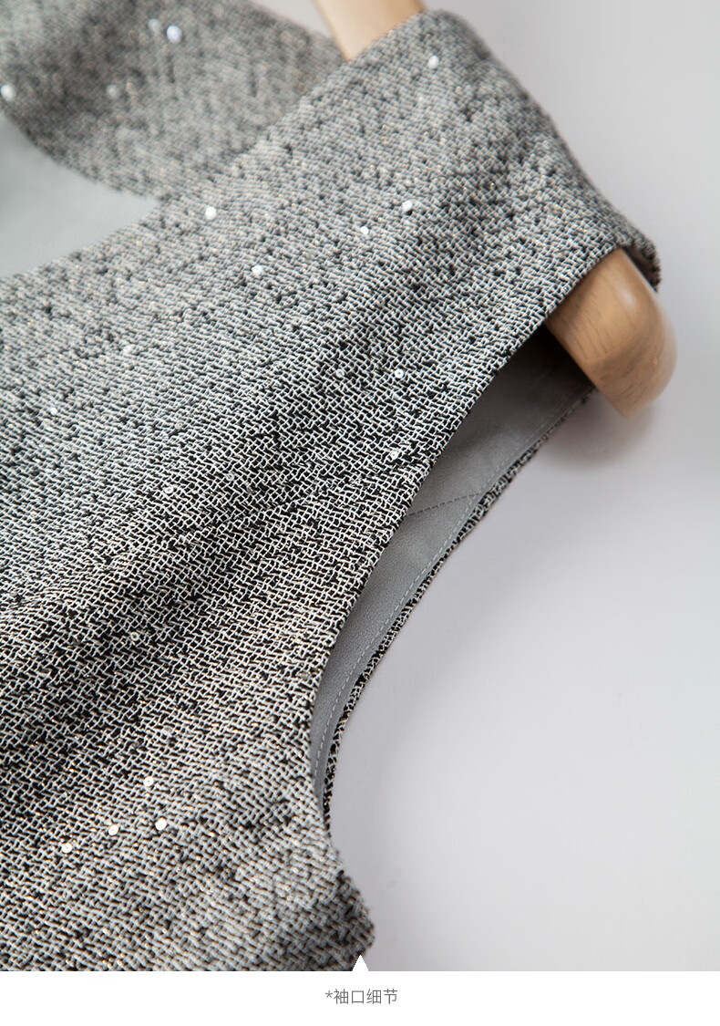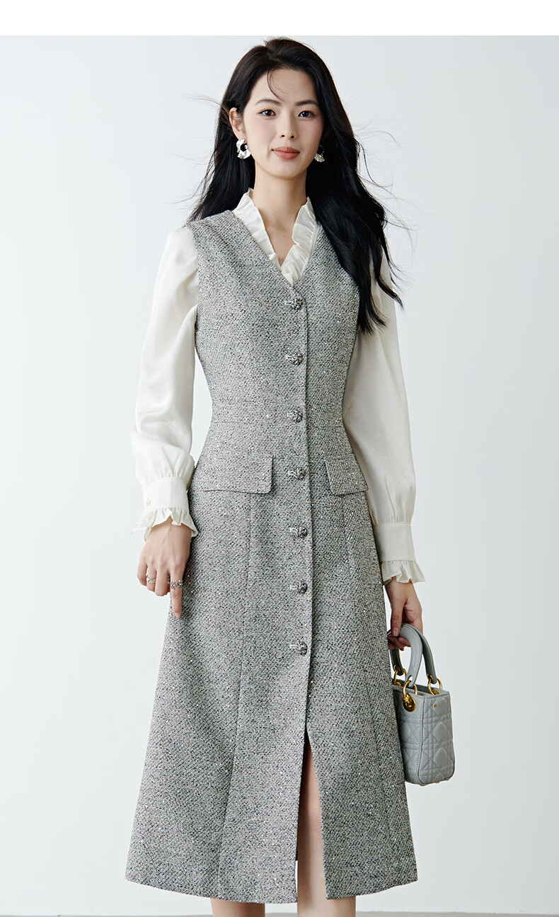 晚白【新品】2026春款时尚V领挺括修身气质百搭格雷灰无袖连衣裙 浅灰色 L