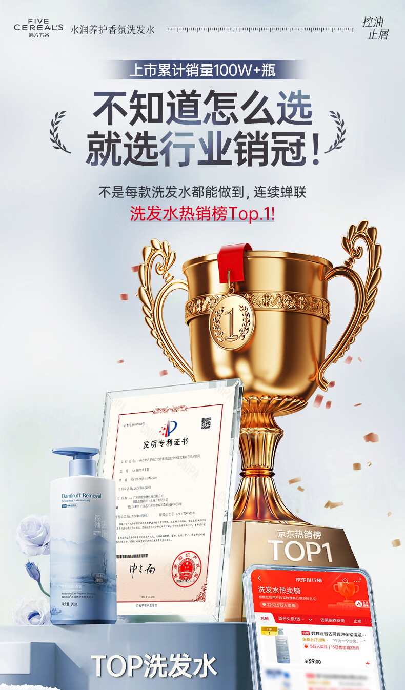 韩方五谷洗发水男女士去屑止痒控油持久蓬松二硫化硒洗头膏洗发露液第1名