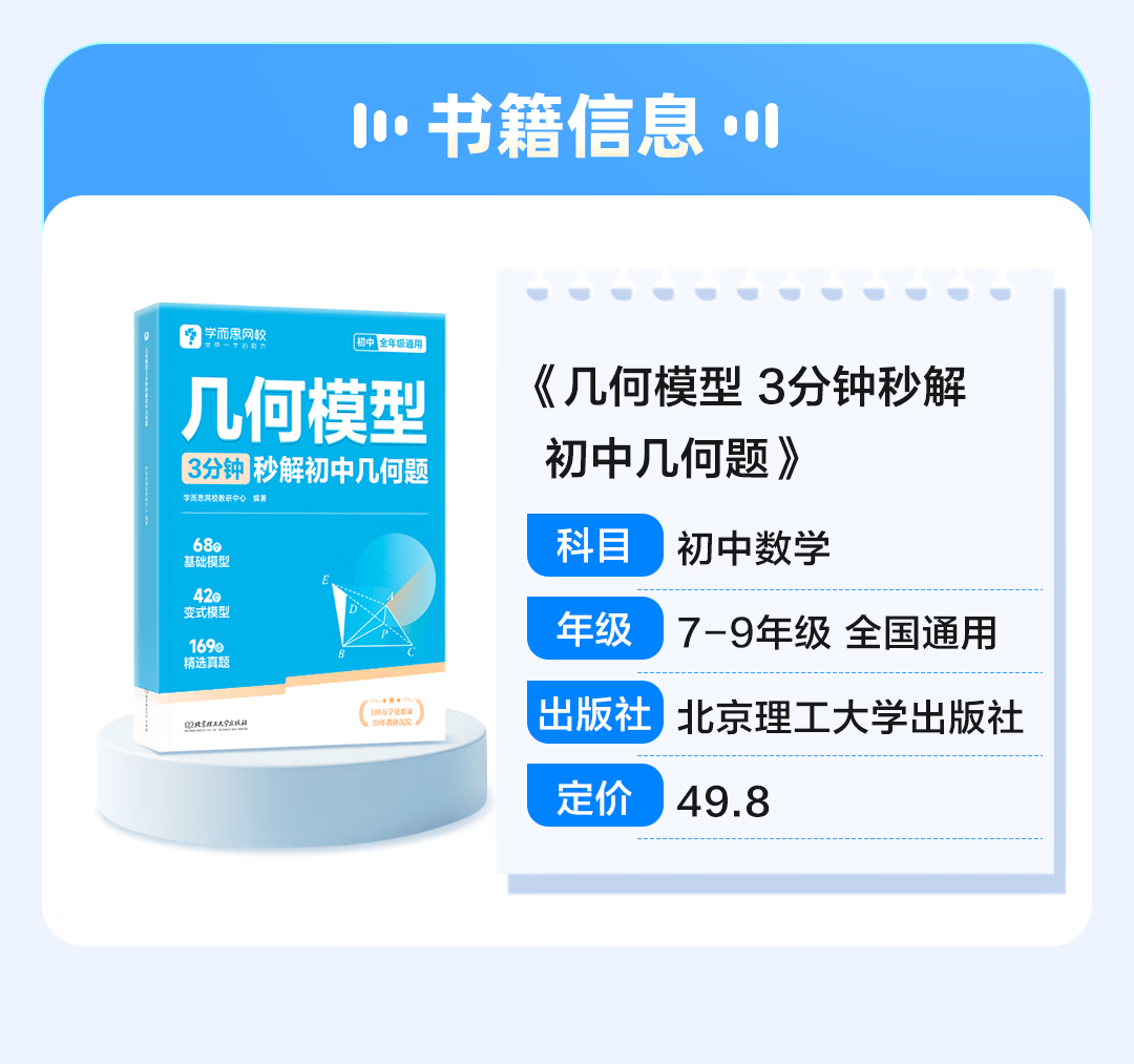 学而思 初中几何3分钟秒解几何题 初一初二初三几何模型常考模型全覆盖掌握解题方法-WX 《初中几何模型》主书+练习册【赠中考函数寒假抢分】