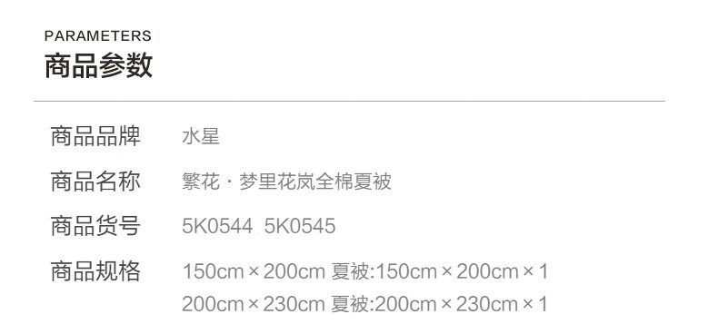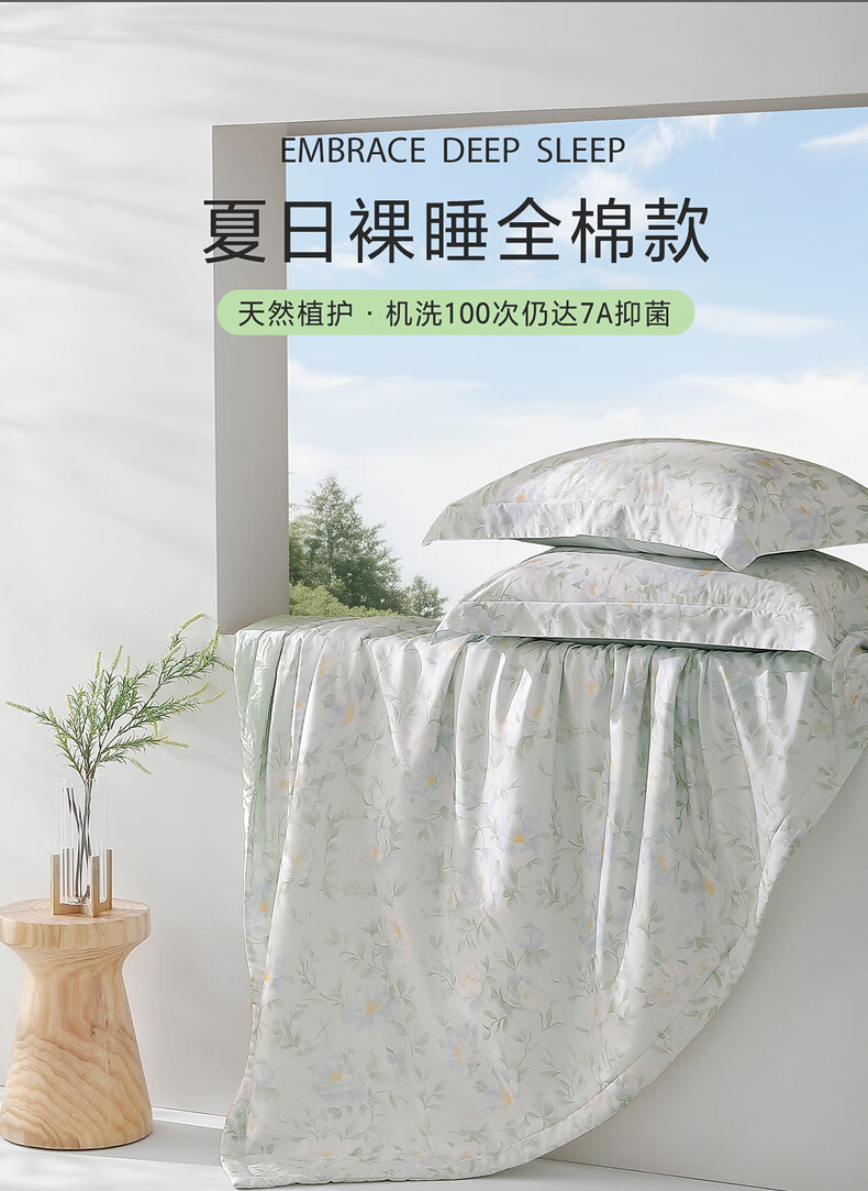 水星家纺夏被空调被A类茶氨酸抗菌居家宿舍空调被26新款 繁花·梦里花岚全棉夏被 150cm*200cm