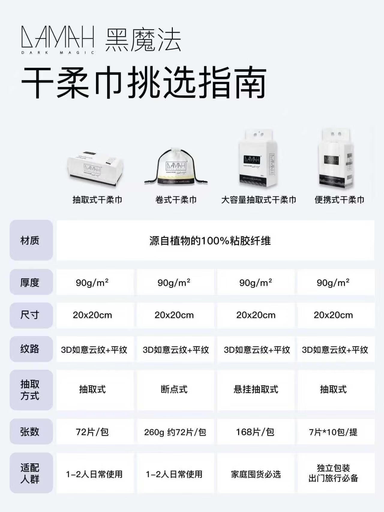 DAMAH DARK MAGIC黑魔法洗脸巾干柔巾一次性便携悬挂式加厚加大擦脸家庭装洗脸巾 168抽*3提