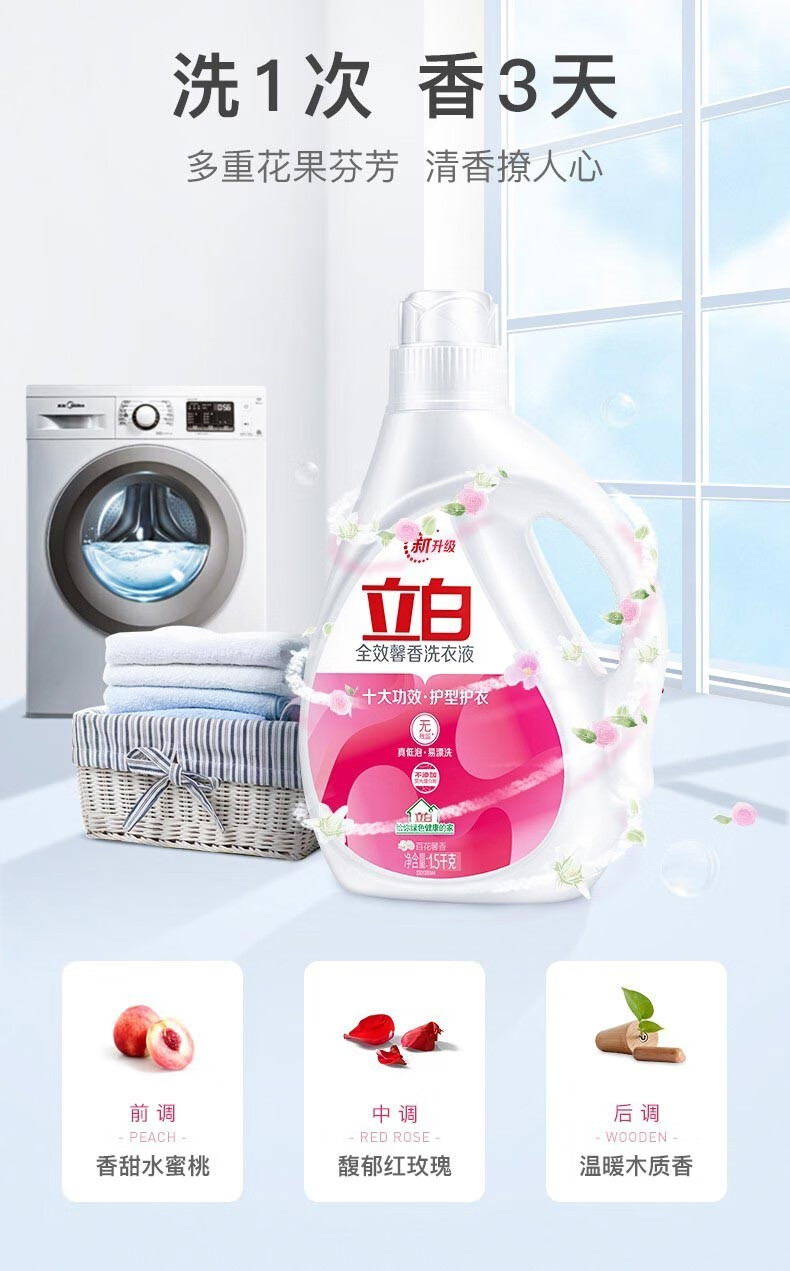 立白洗衣液全效馨香香味持久低泡易漂无磷家庭装 【整箱装】18斤丨全效馨香液