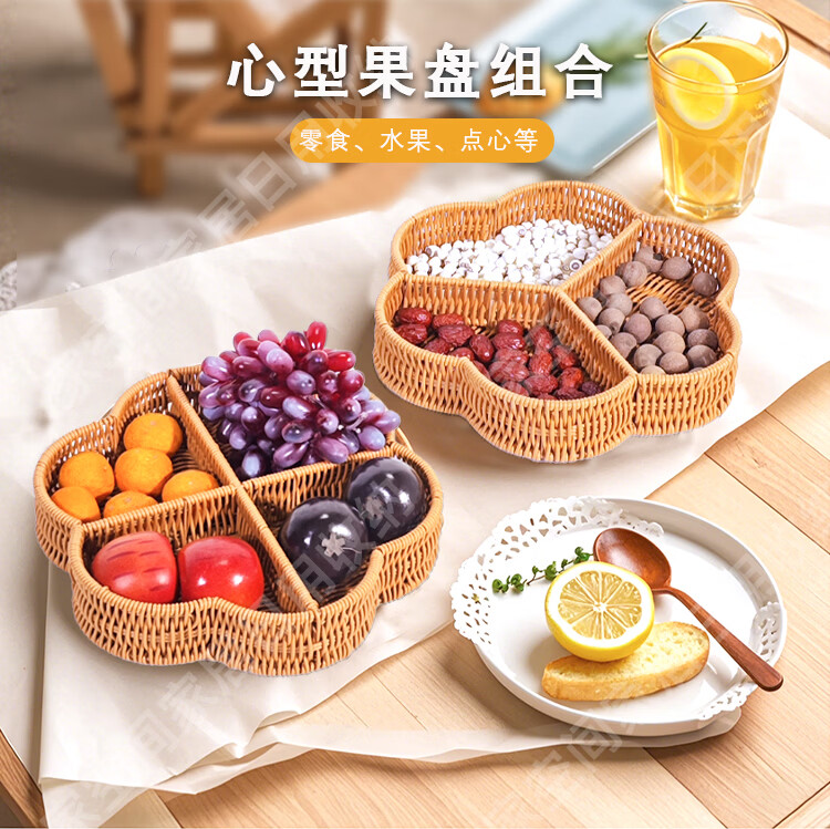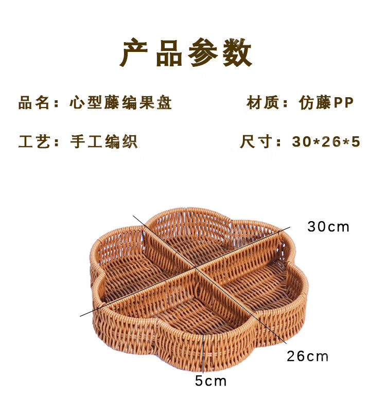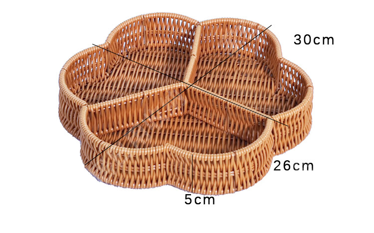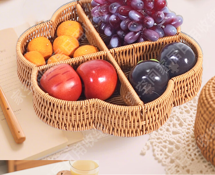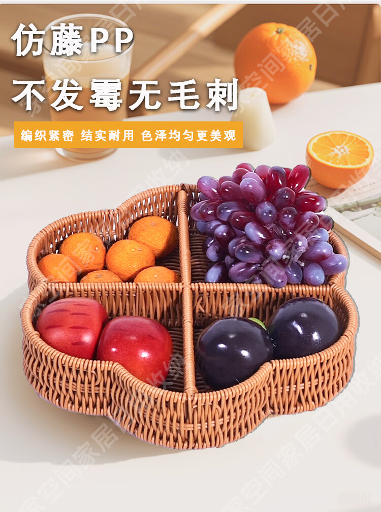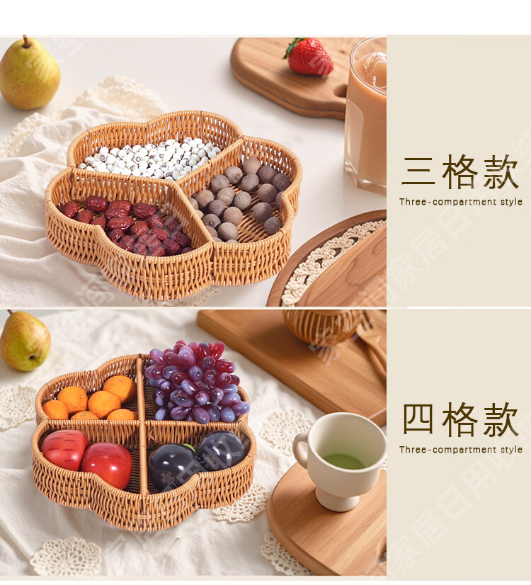 兴泰旺手工仿藤编水果篮子干果盘客厅茶几家用分格零食筐子桌面收纳盒 茶色 25*25*6cm 3格 G141-002奔驰标中号