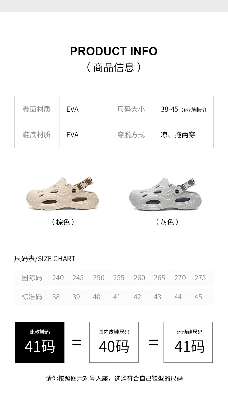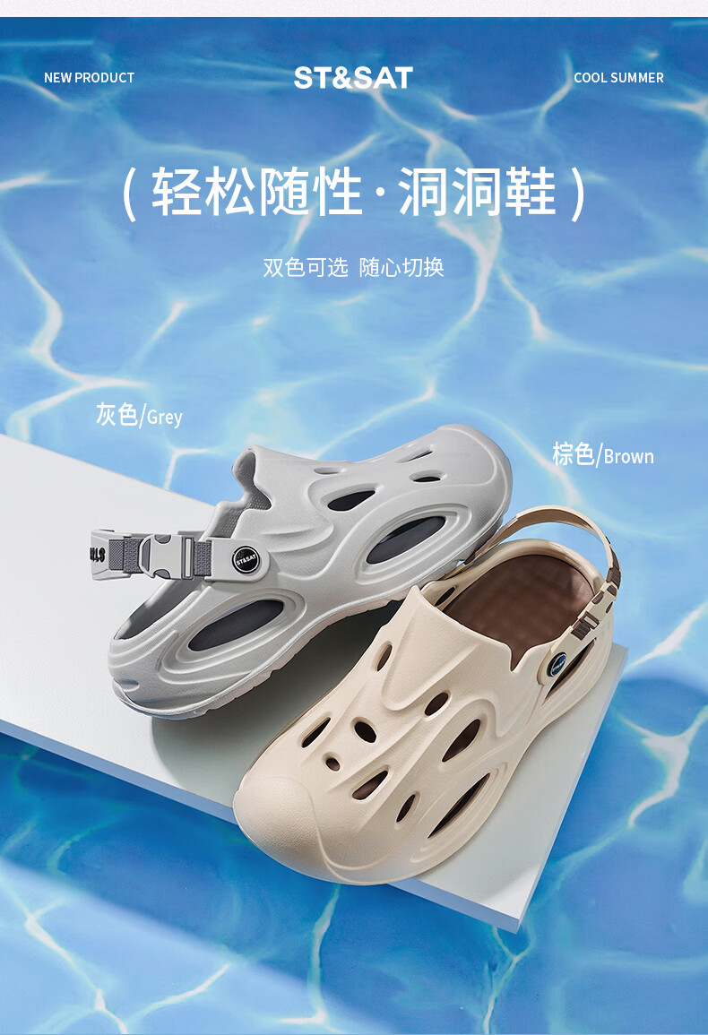 星期六(St&Sat)两穿洞洞鞋男夏季舒适凉鞋百搭运动凉拖鞋男轻便海边防滑沙滩鞋男 灰色 44-45 标准运动鞋尺码