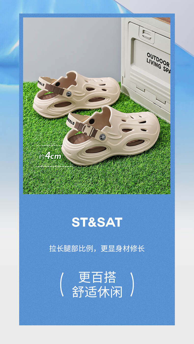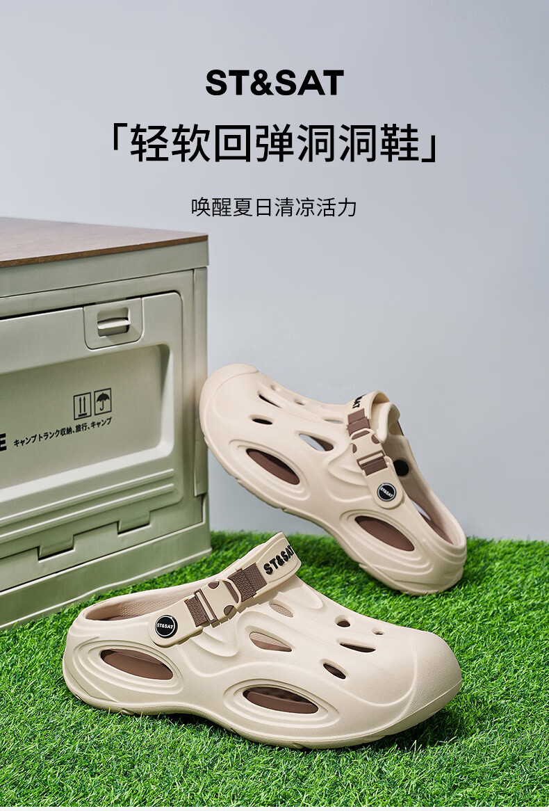 星期六(St&Sat)凉鞋男夏季新款防滑洞洞鞋男户外涉水沙滩鞋运动百搭透气休闲男鞋 绿色 44-45 标准运动鞋尺码