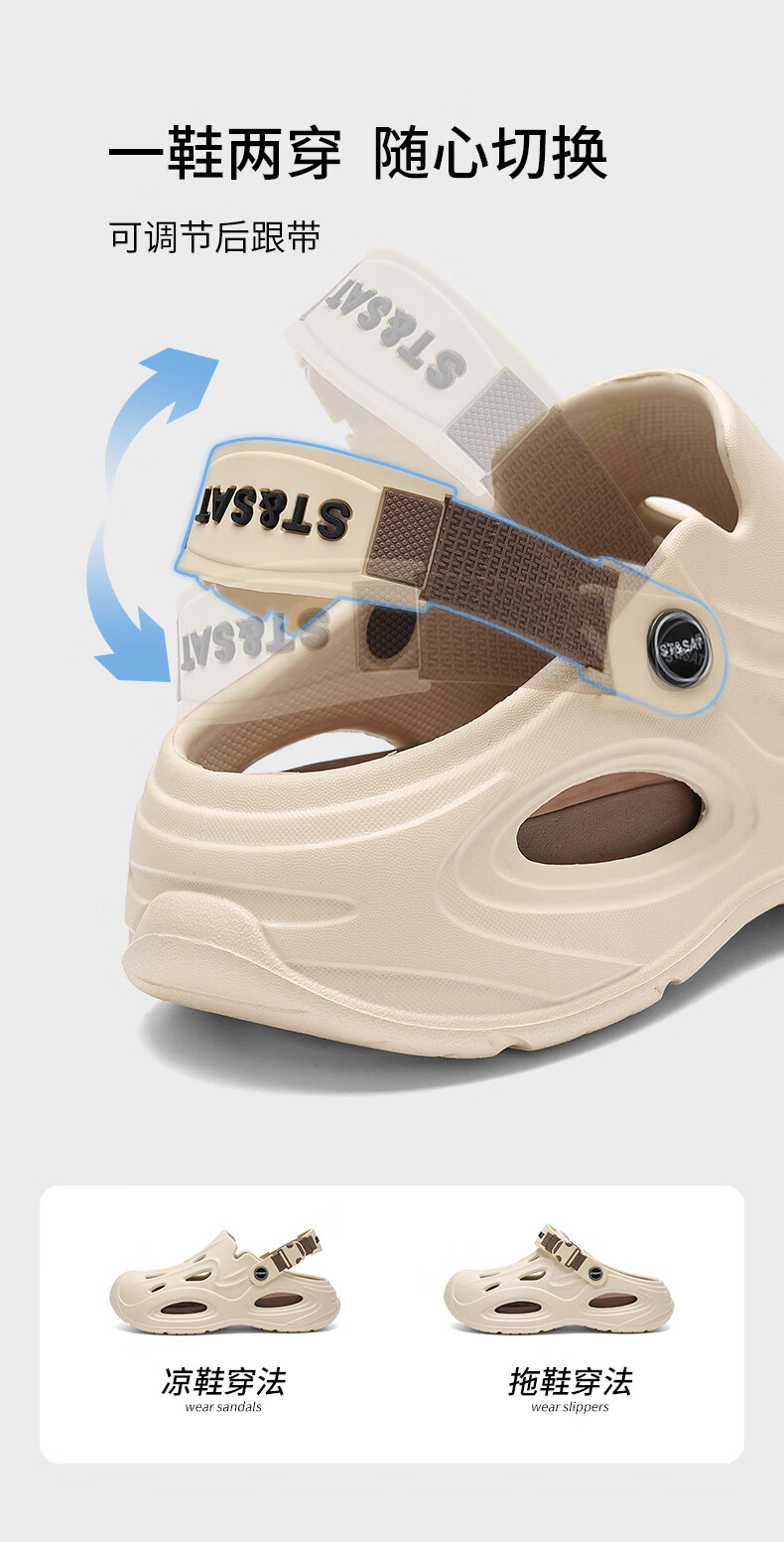 星期六(St&Sat)洞洞鞋男士夏季新款户外两穿凉鞋男休闲涉水凉拖鞋男防滑沙滩鞋男 深蓝色 44-45 标准运动鞋尺码