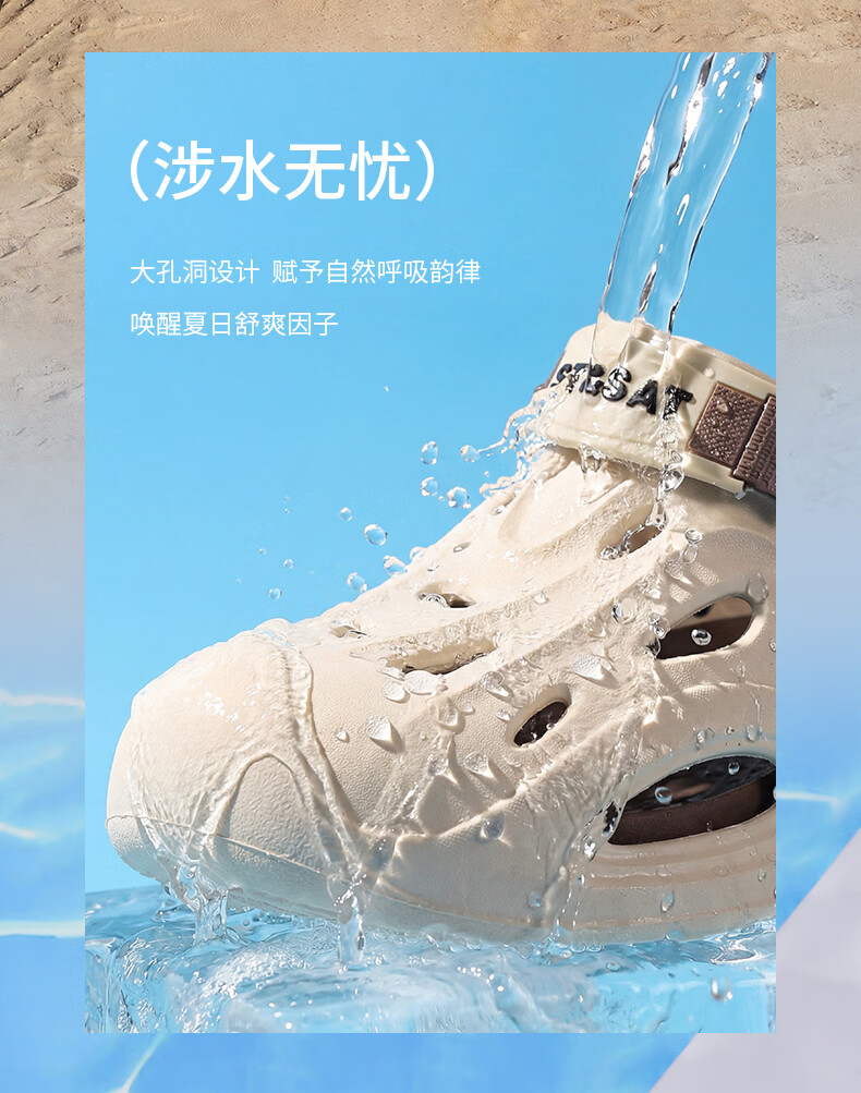 水星家纺洞洞鞋女夏季新款外穿DIY包头凉鞋厚底沙滩情侣拖鞋男 骨白色+冰蓝海屿 44-45 【适合43-44码脚】