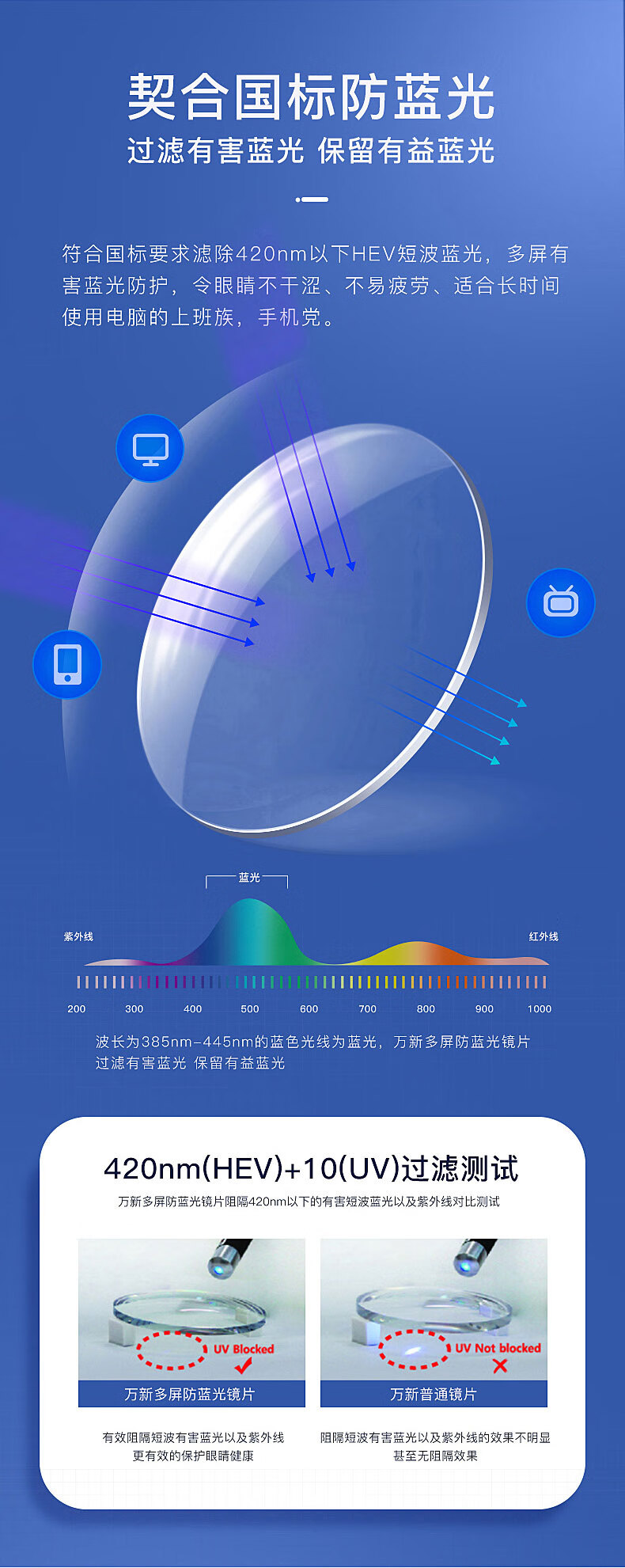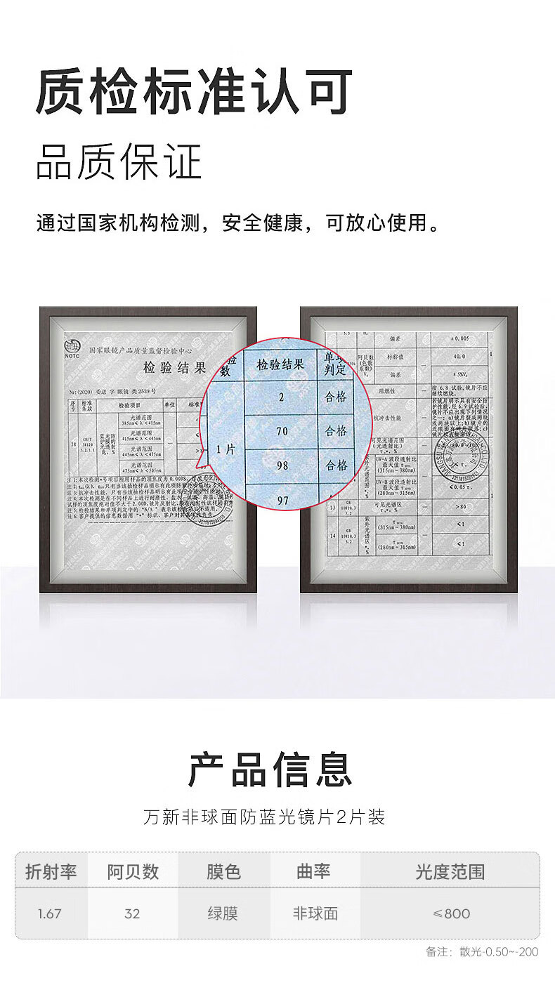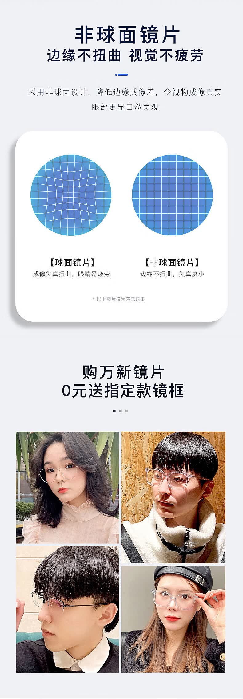 万新(WAN XIN) 万新近视眼镜防蓝光辐射非球面现片配眼镜框男女1.67成品眼镜3 TR90-全框-1147BR-茶色 1.67(超薄)