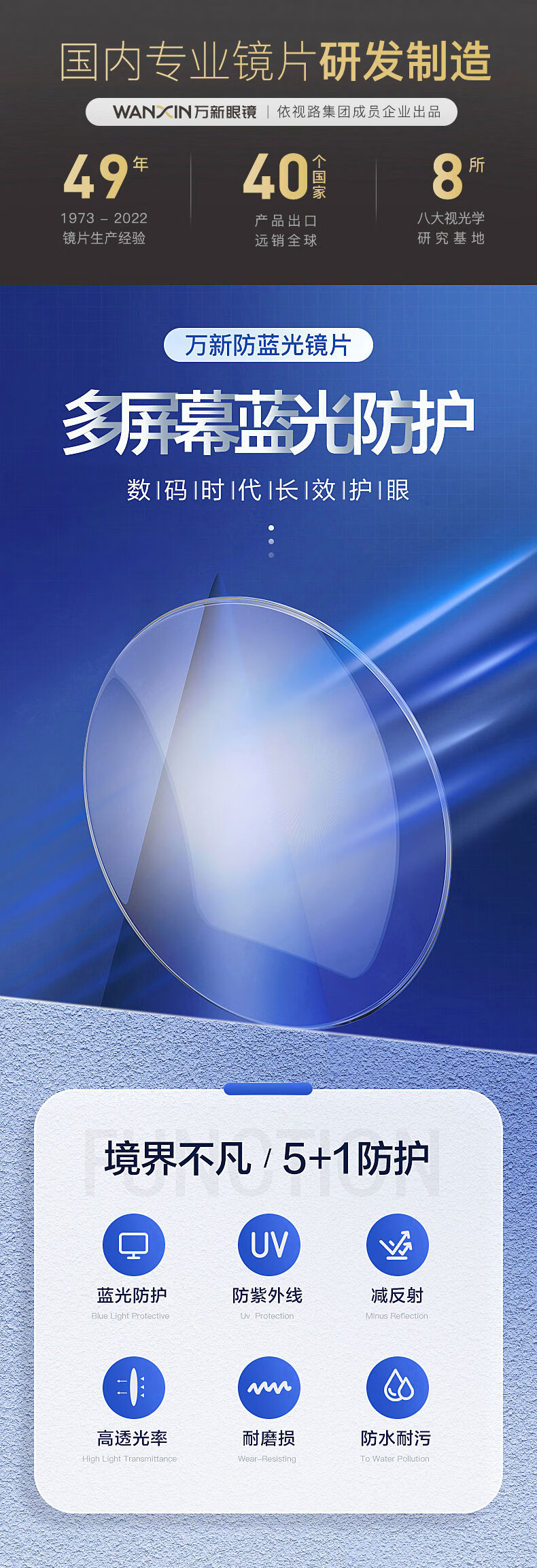 万新(WAN XIN) 万新近视眼镜防蓝光辐射非球面现片配眼镜框男女1.67成品眼镜 金属-全框80008C1黑色 1.67(超薄)