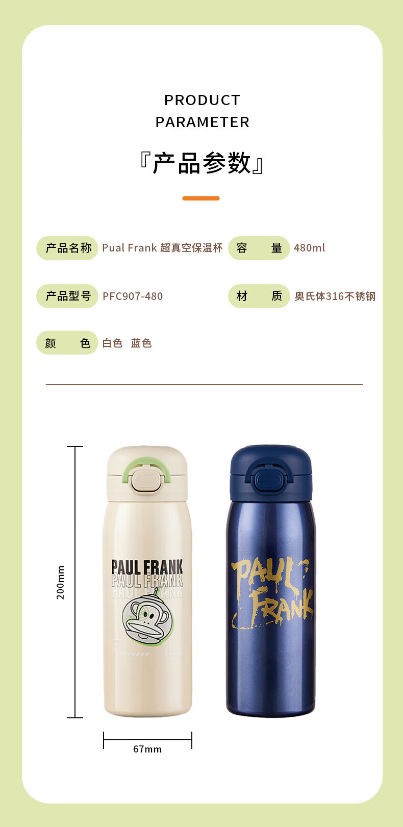 大嘴猴(paul frank)智能保温杯 电子温显 运动便携 灰色380ml