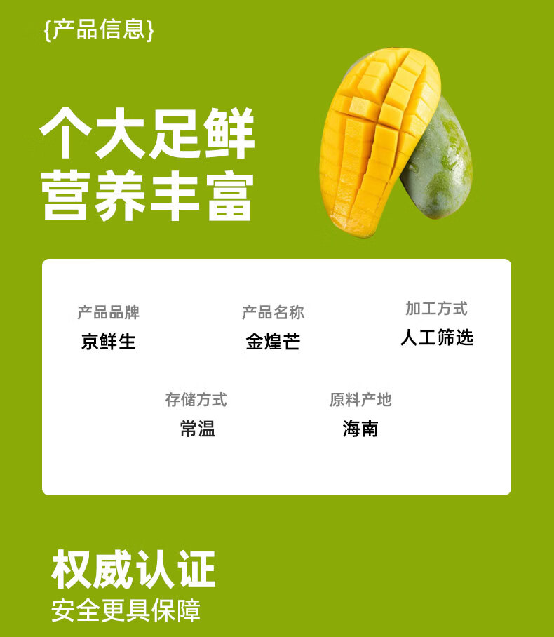京鲜生海南金煌芒 芒果净重3斤装单果200g起源头直发