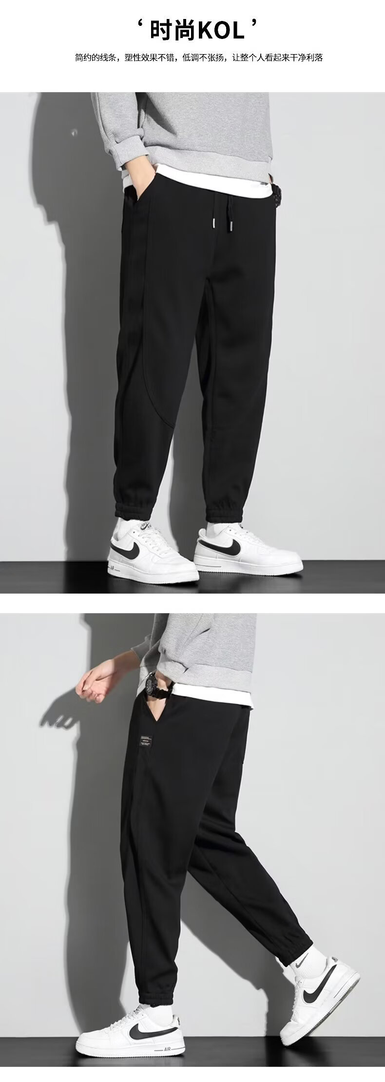 燠阳春季新款宽松束脚男士哈伦裤运动休闲卫裤男士潮流时尚运动裤子 黑色(常规款) 2XL 【130-145斤】