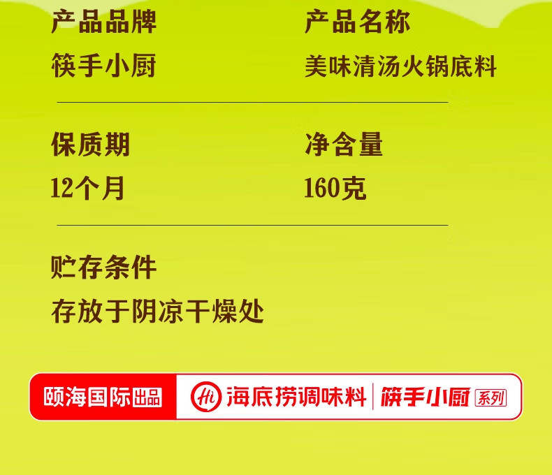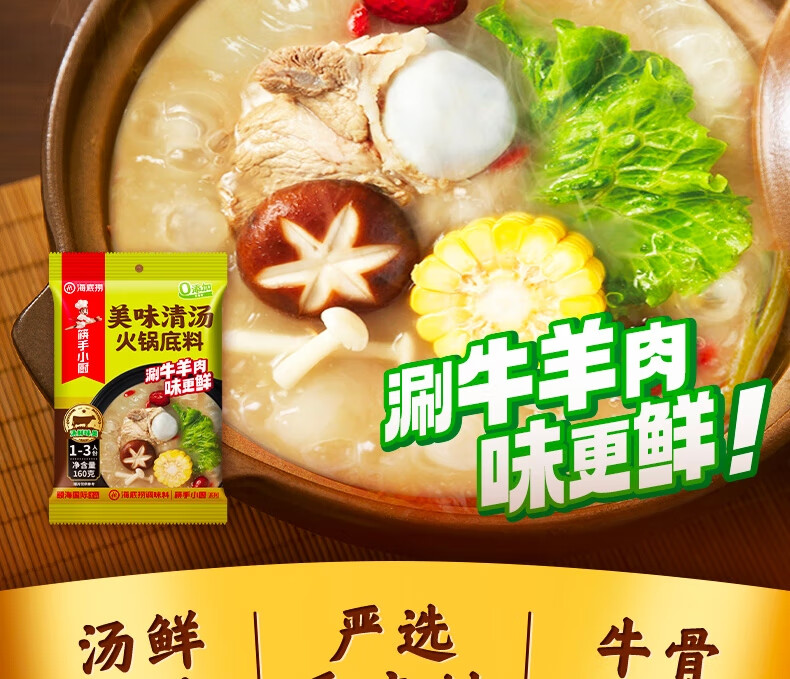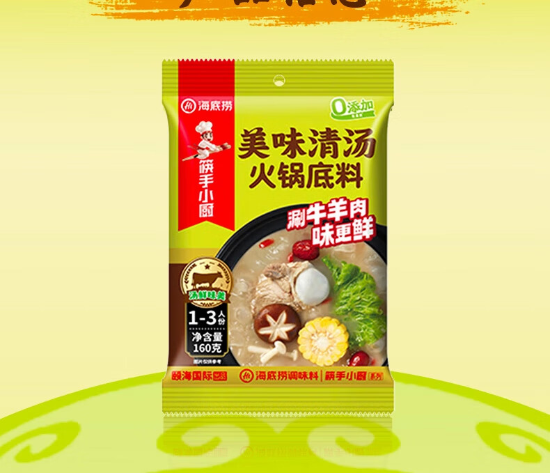 海底捞火锅底料 美味清真牛骨清汤火锅底料160g 鲜香一料多用