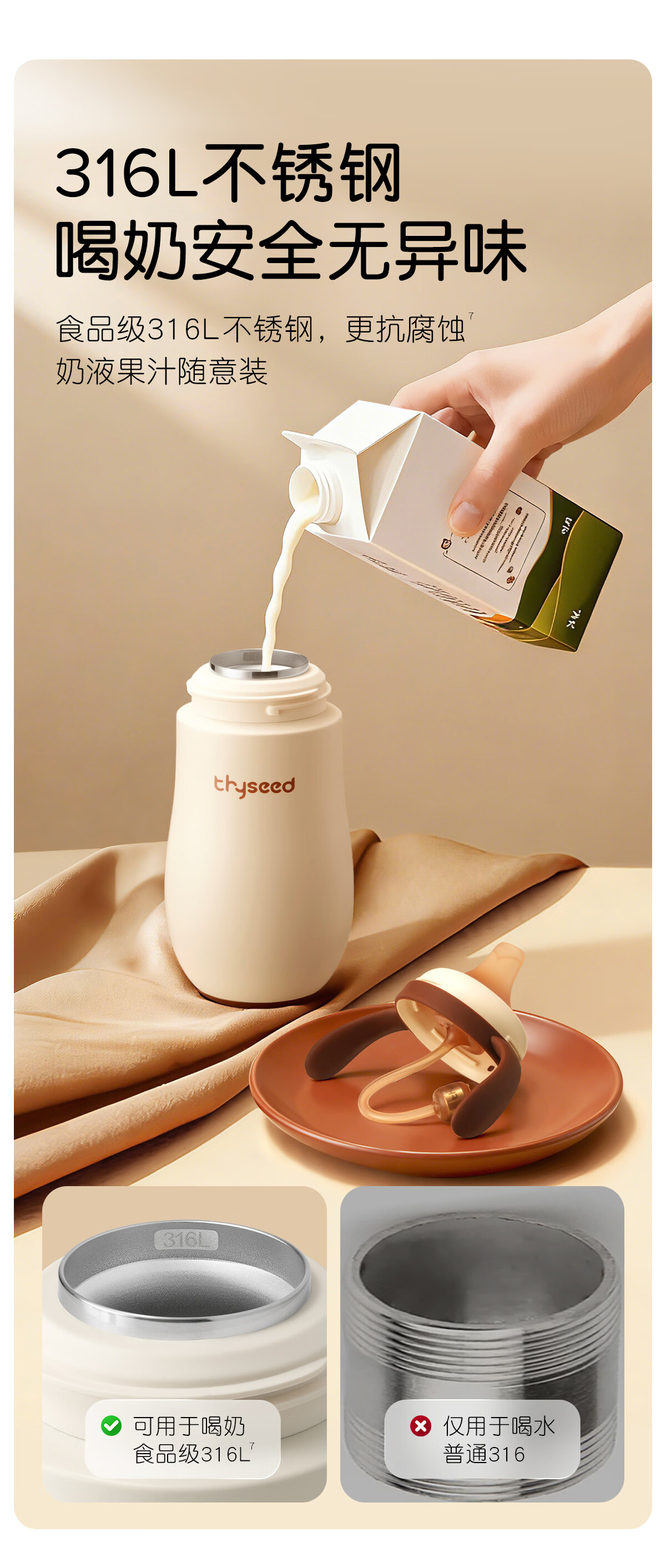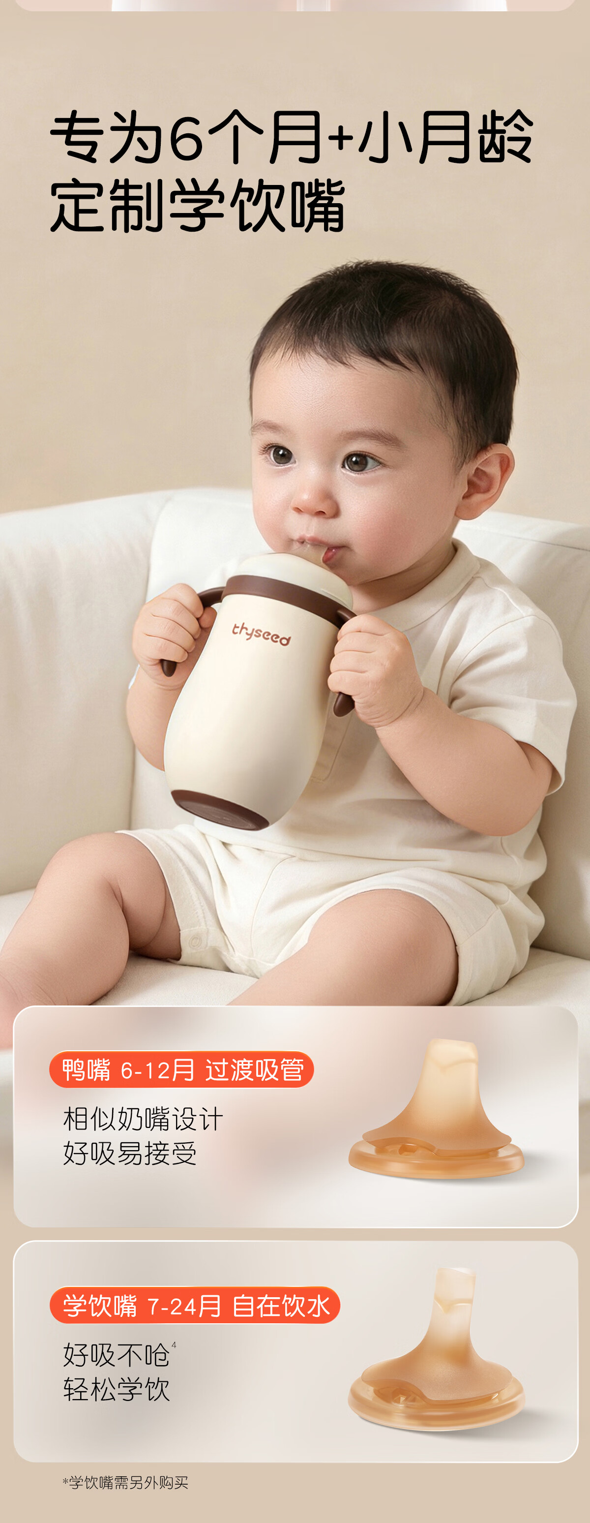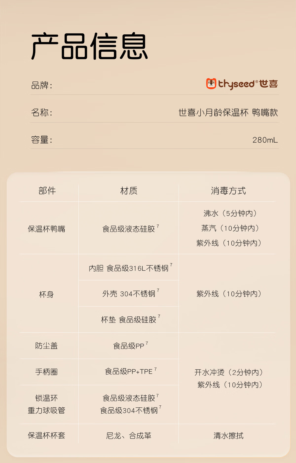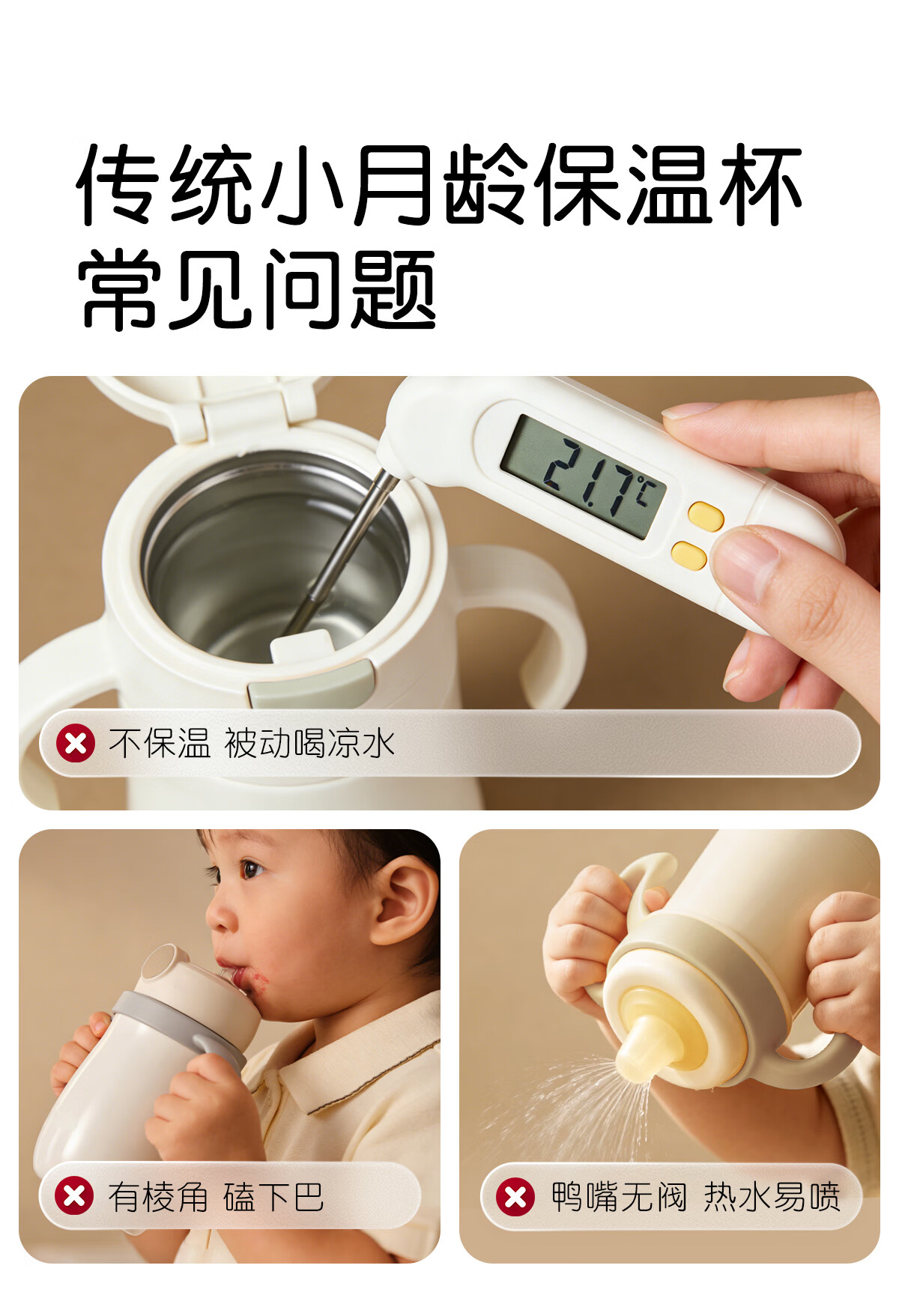 世喜婴儿保温杯幼儿小月龄鸭嘴杯316L不锈钢学饮杯保温奶瓶6个月以上