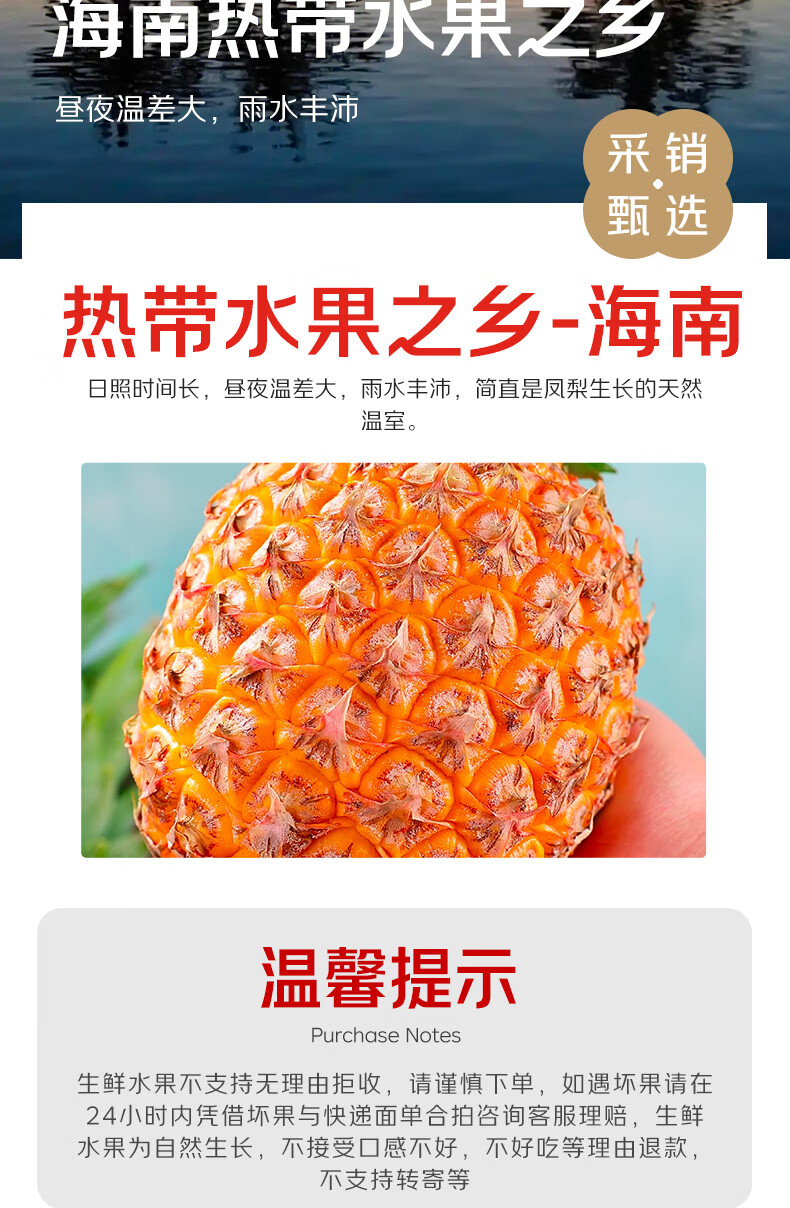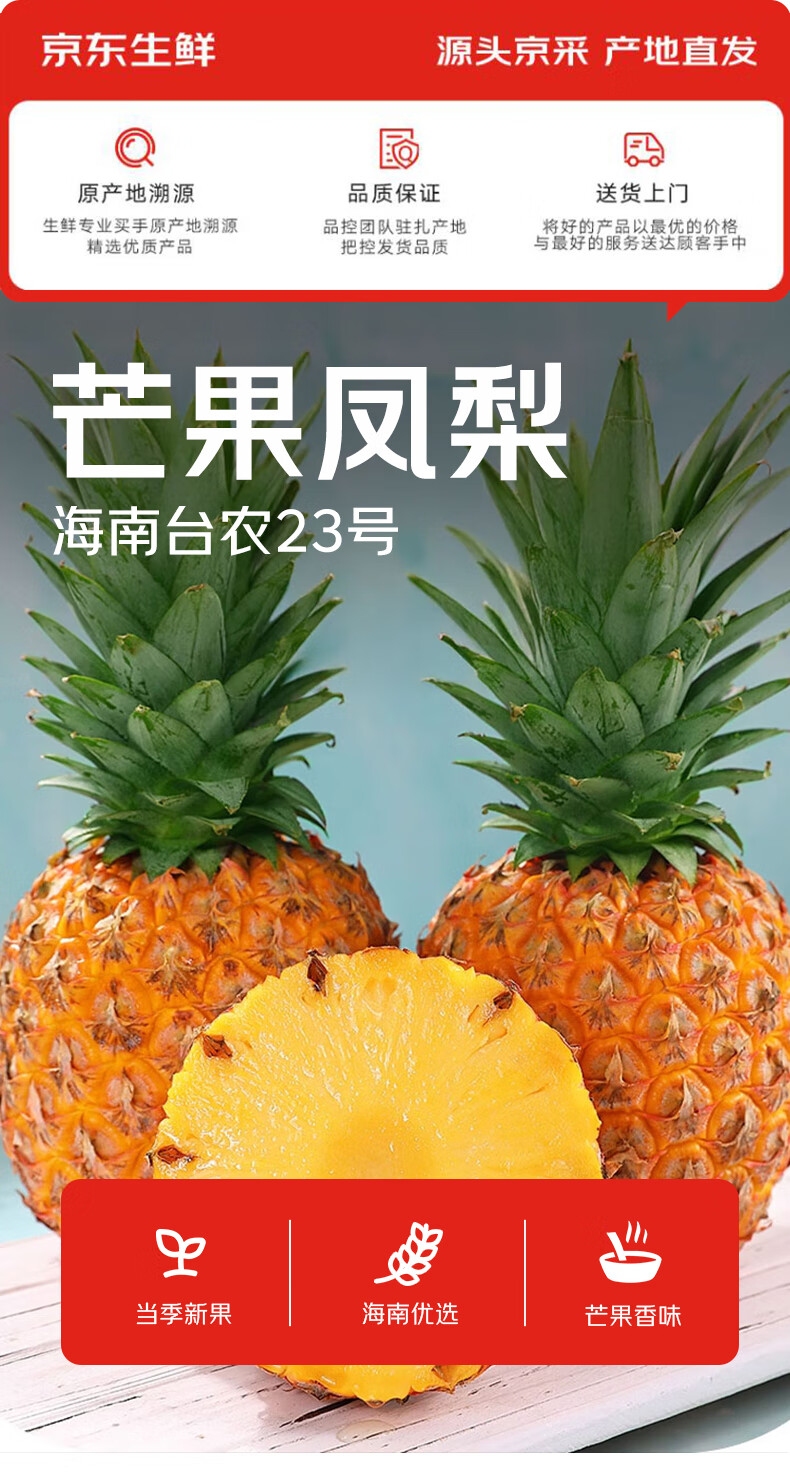 京鲜生海南金钻凤梨 净重7.5-8斤单果650g+新鲜水果生鲜源头直发