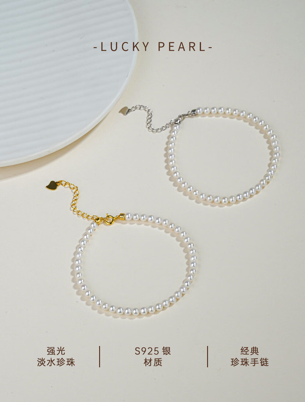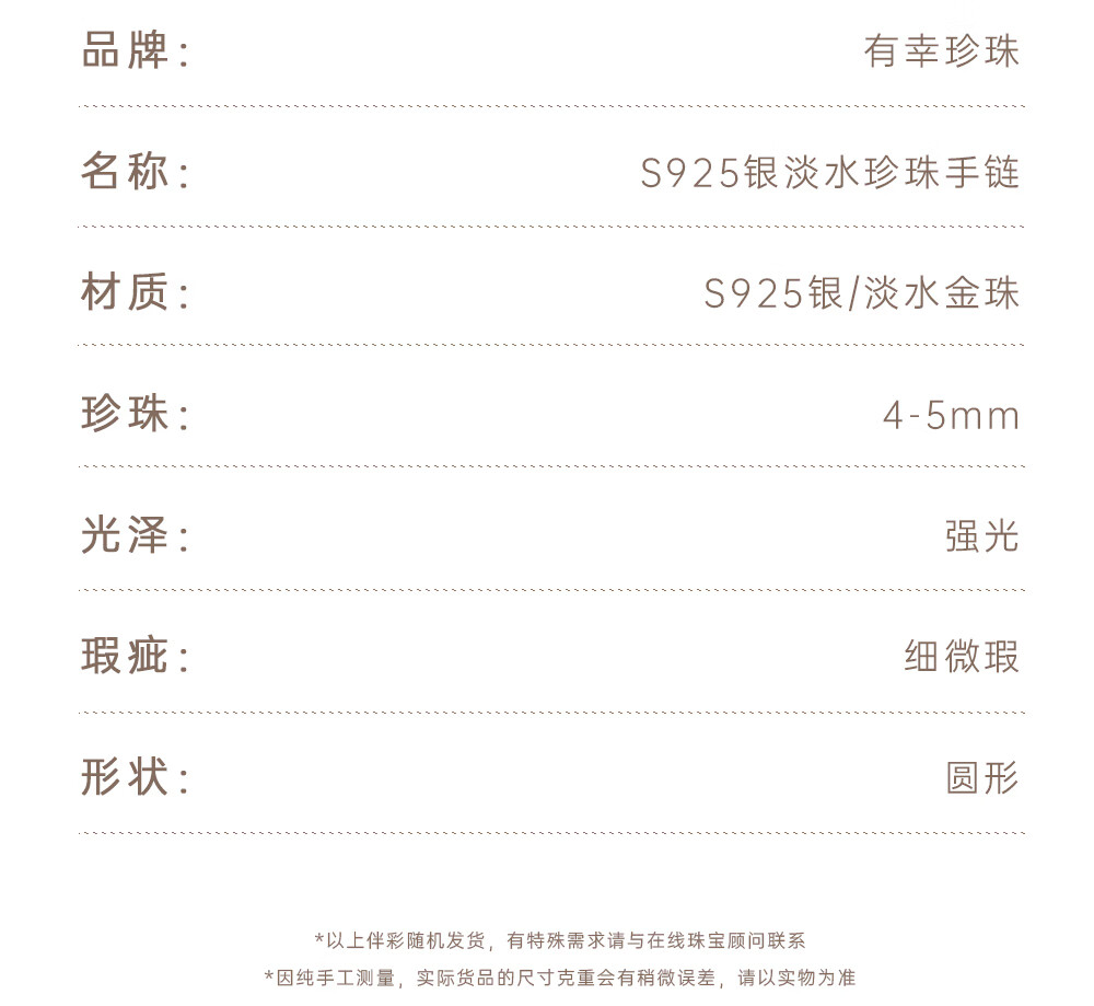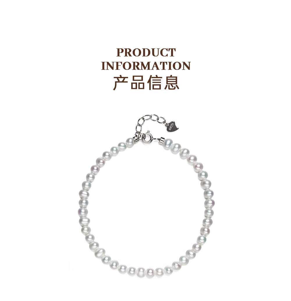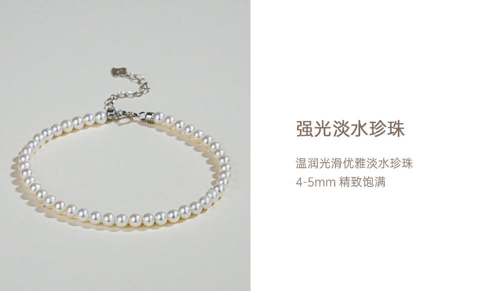 有幸珍珠手链 925银强光泽淡水珍珠经典百搭珍珠手饰手链生日礼物 S925银白 4-5mm 圆形/强光/细微瑕 长约:16+4cm