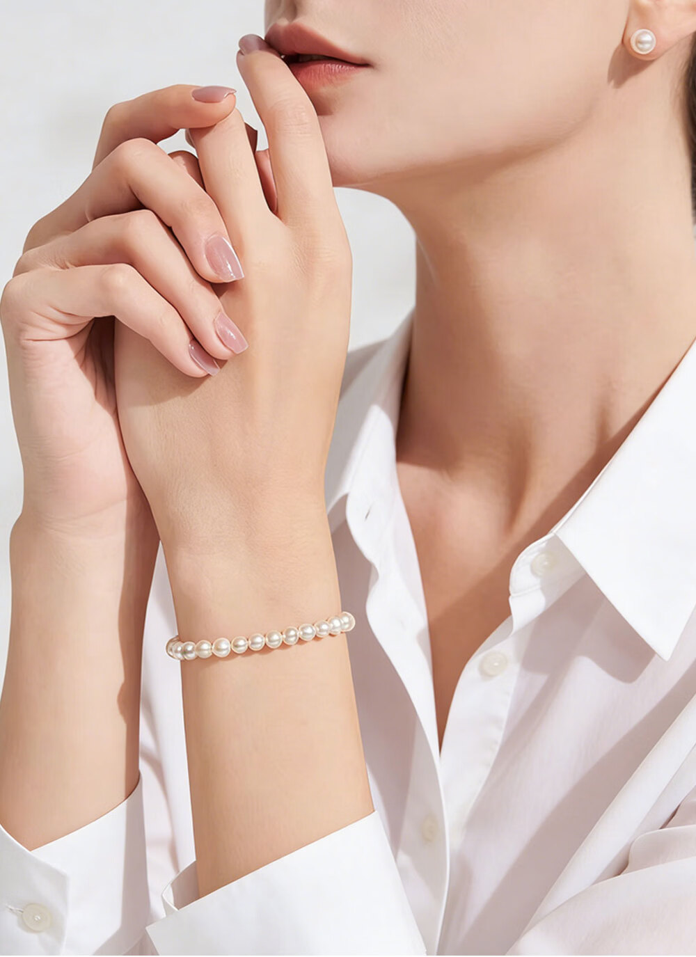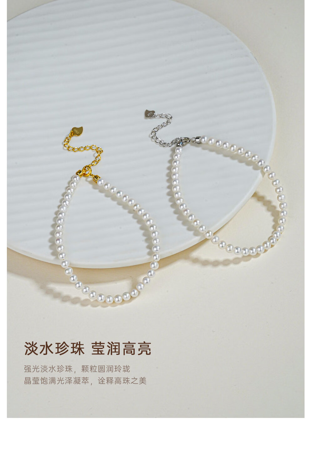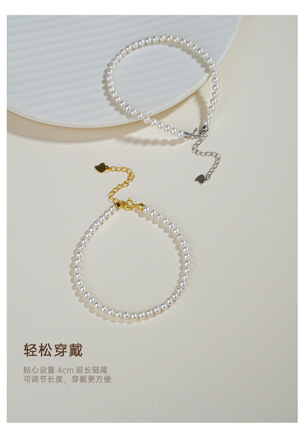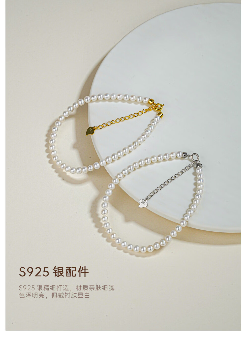 有幸珍珠手链 925银强光泽淡水珍珠经典百搭珍珠手饰手链生日礼物 S925银白 4-5mm 圆形/强光/细微瑕 长约:16+4cm