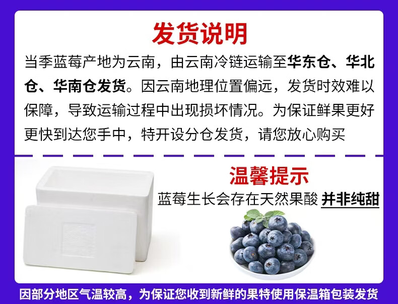 鲜农涧现摘云南蓝莓酸甜时令当季鲜果 护眼鲜果 整箱包邮 辅食水果 8盒 单果15-18mm 【100-125g/盒】