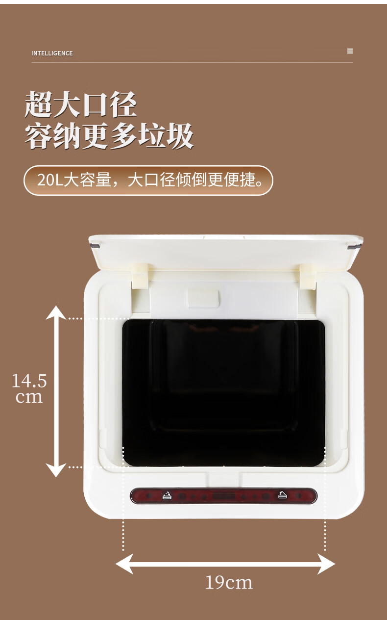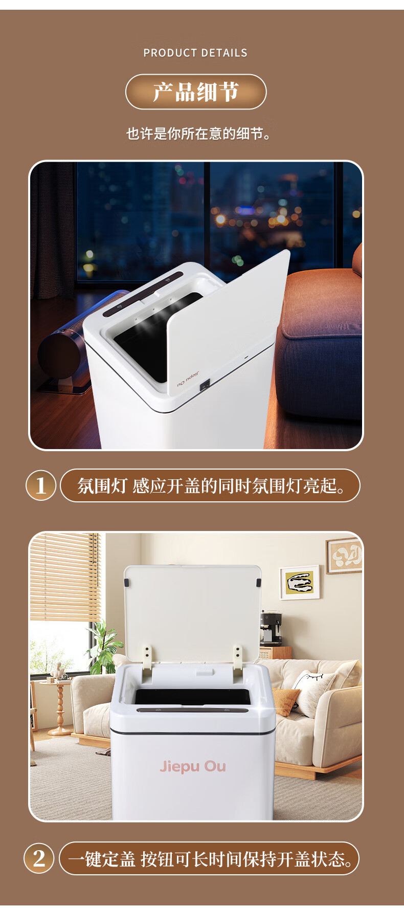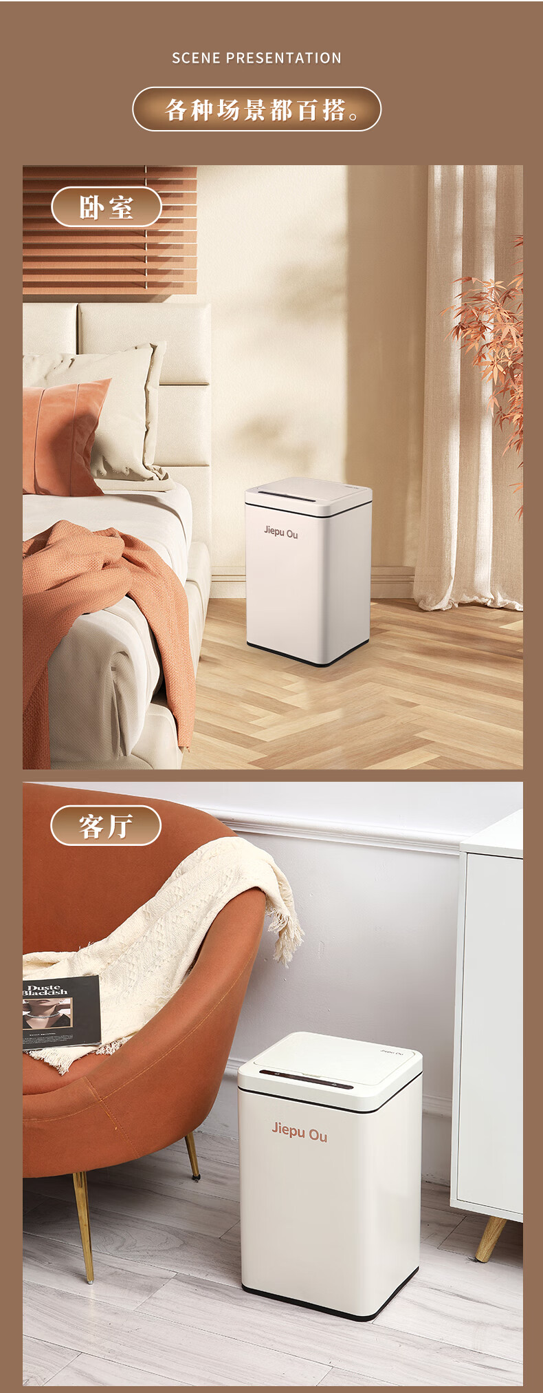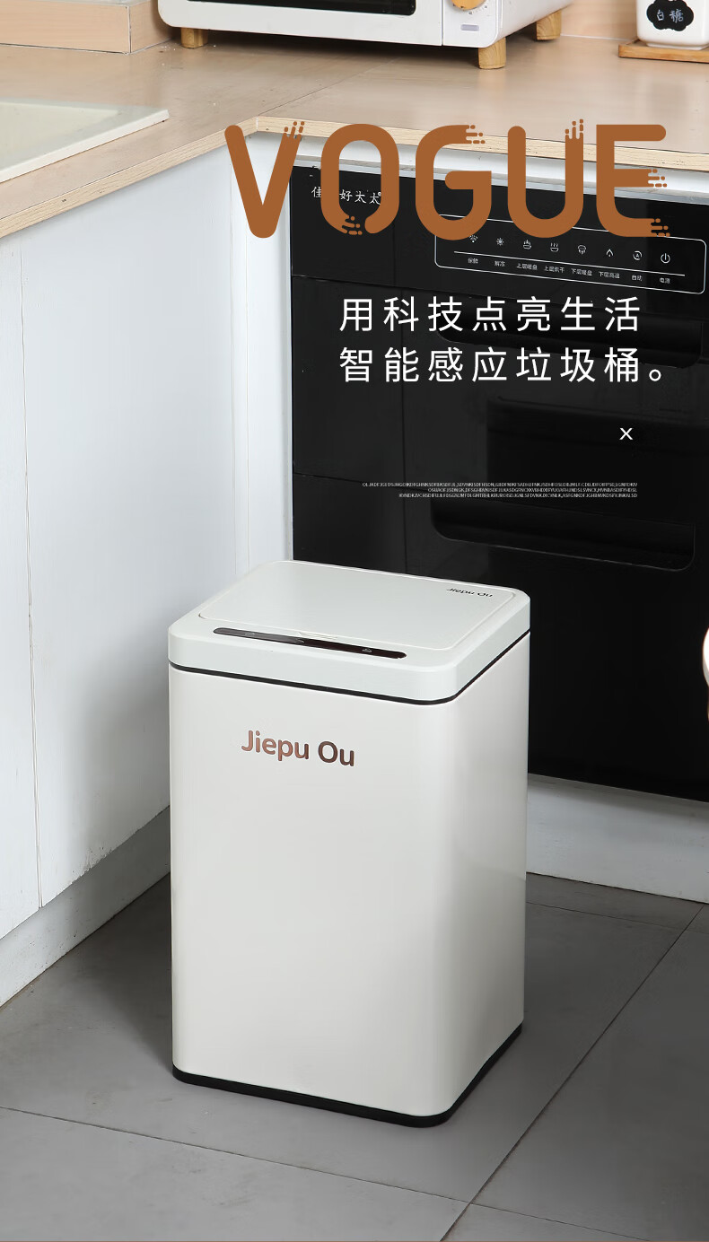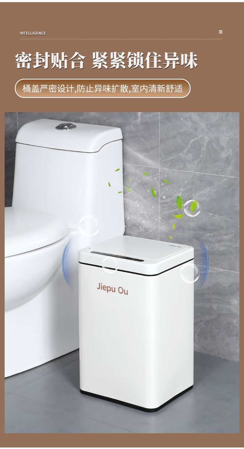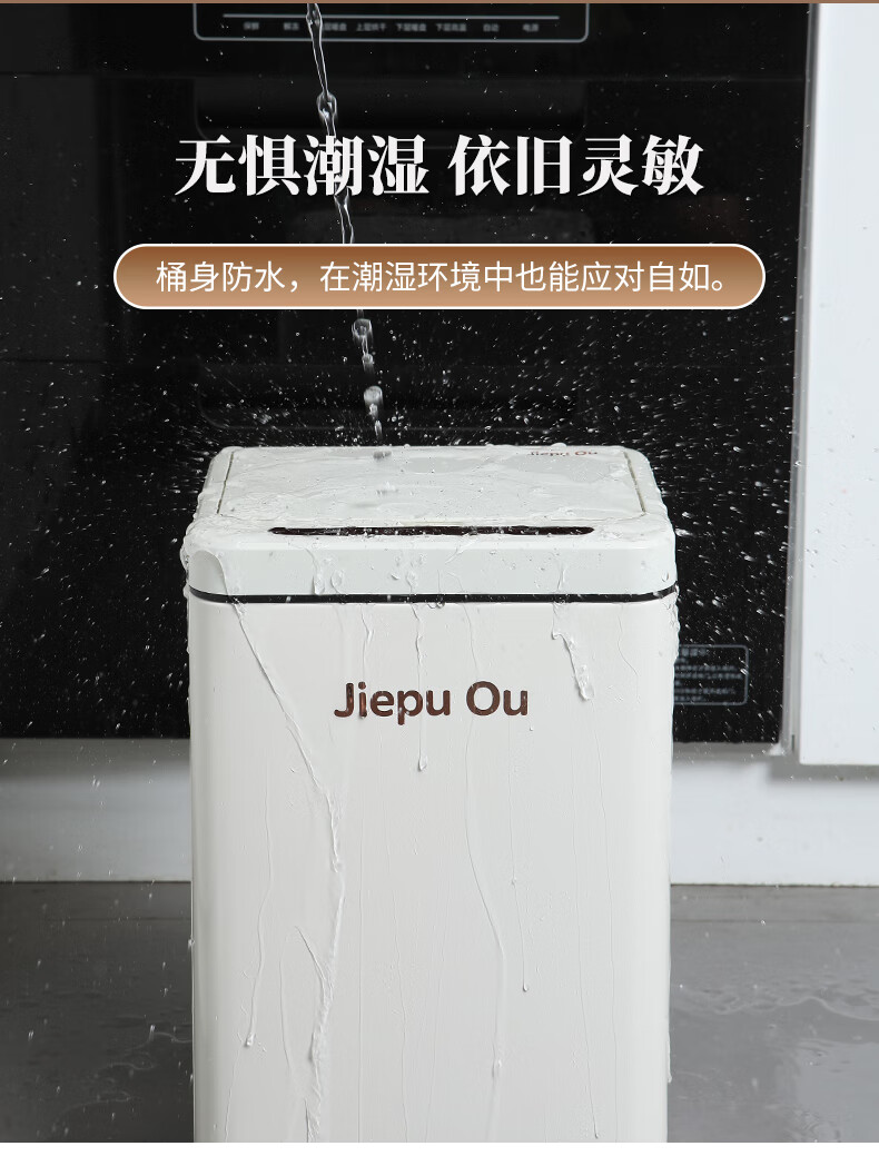 洁普欧不锈钢智能感应垃圾桶带盖大容量客厅厨房卫生间带垃圾娄 经典黑(内桶15L)