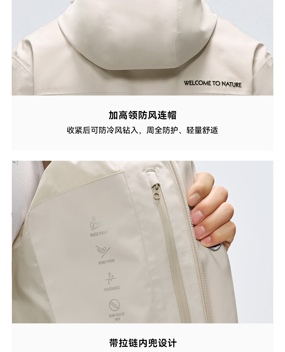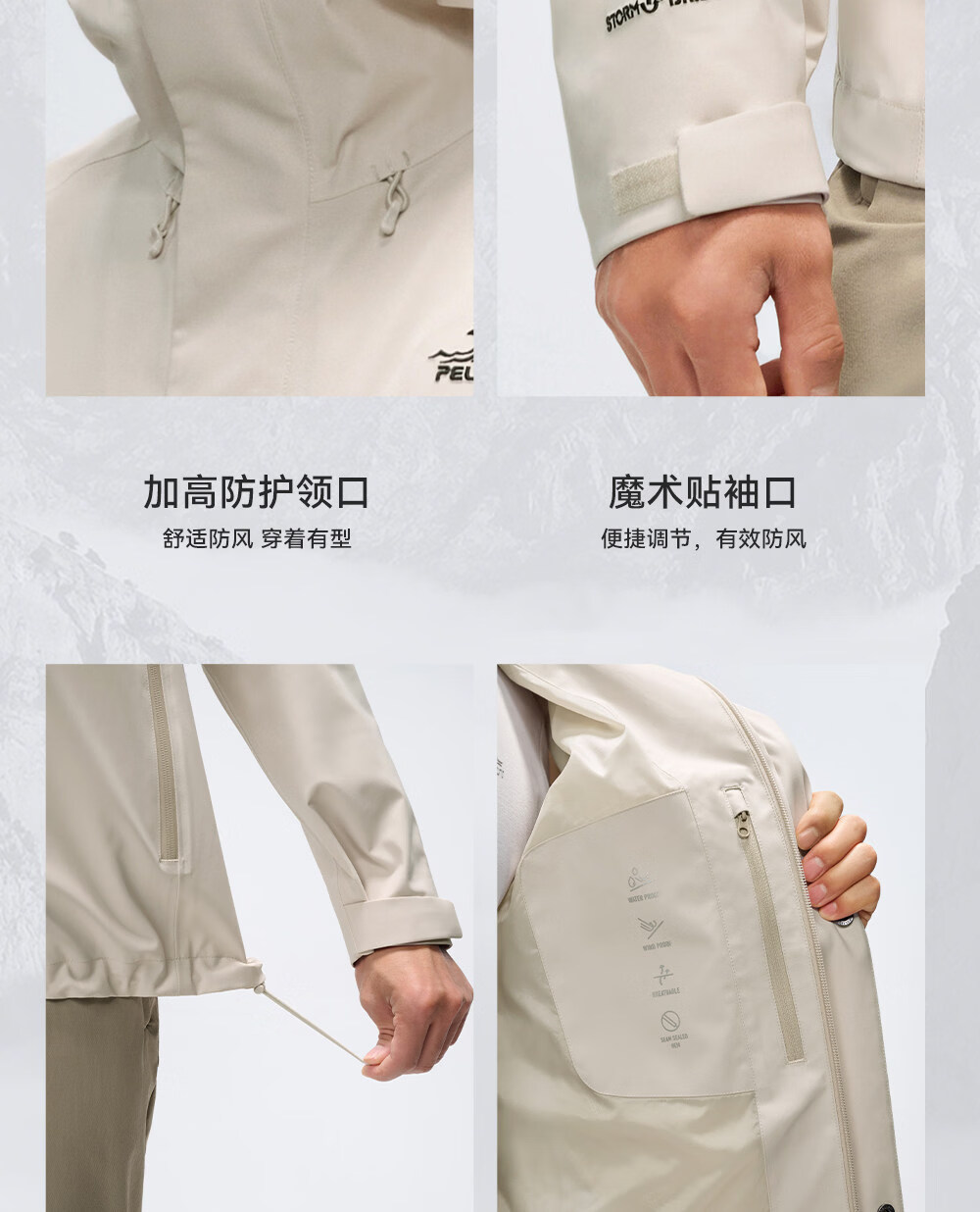 伯希和(Pelliot)【归野】户外单层冲锋衣男2025新款Teflon三防徒步登山服男 【女款】贝壳粉 三防科技面料 L