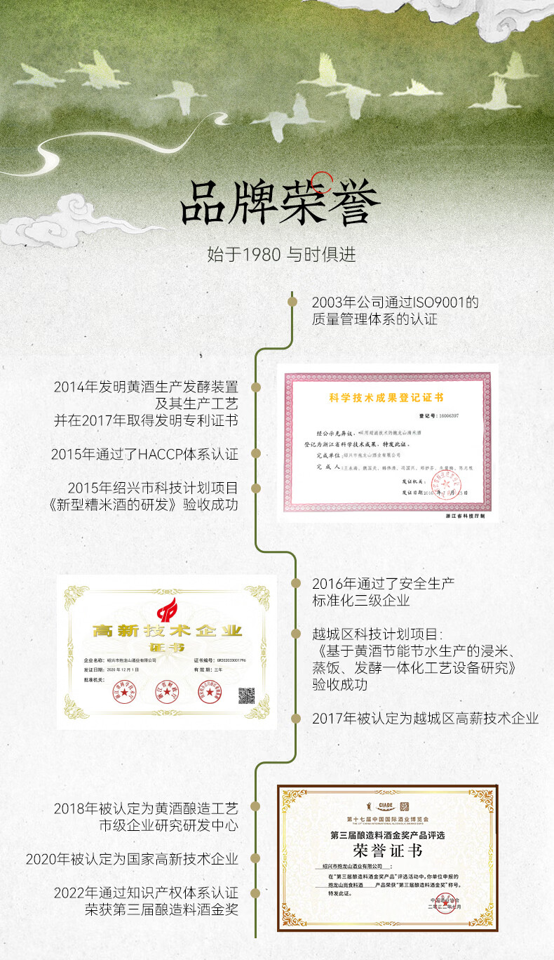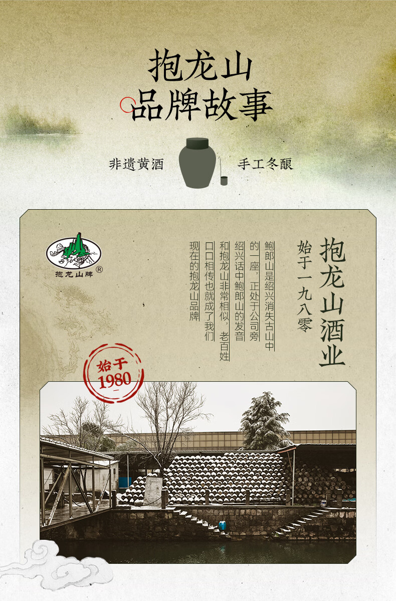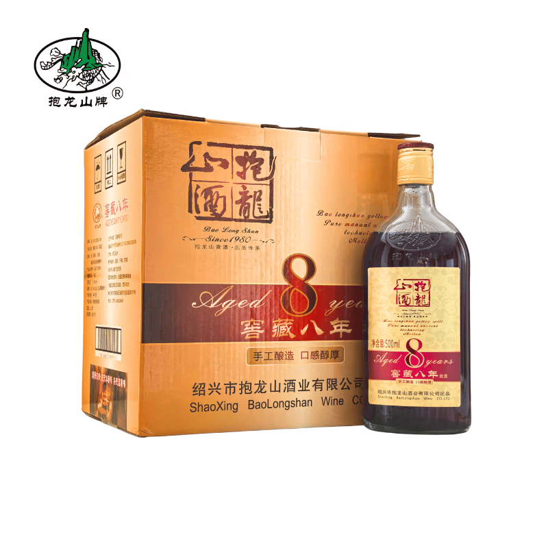抱龙山牌(baolongshan)正宗绍兴黄酒11度窖藏八年手工酿造半干型清爽型黄酒 500mL 8瓶 整箱装